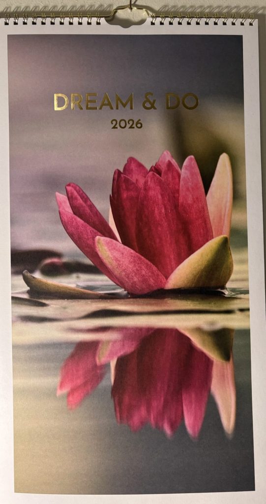Jag gillar min nya väggalmanacka Dream & Do. Det är vackra bilder varje månad och till varje bild finns ett tänkvärt ord. Jag gillar tänkvärda ord och aforismer.