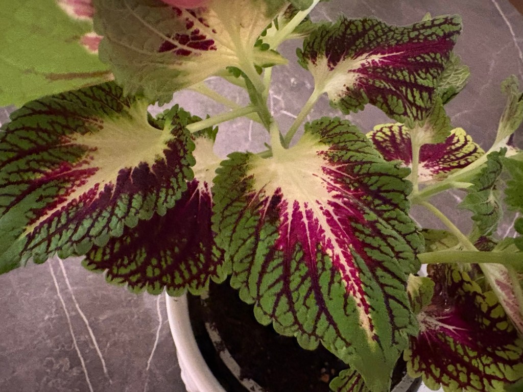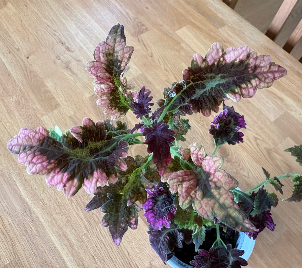 När jag städade ut julen placerade jag om en del växter. Jag upptäckte då att några av palettpladen har utvecklat flera olika färger. När palettbladen utsätts för mycket sol får de starkare färger. Just denna växt har utvecklat både färgstarka lila blad och mildare rosa blad. Det har inte varit många soltimmar den senaste tiden men ändå har det funnits viss växtkraft. Så läckert!