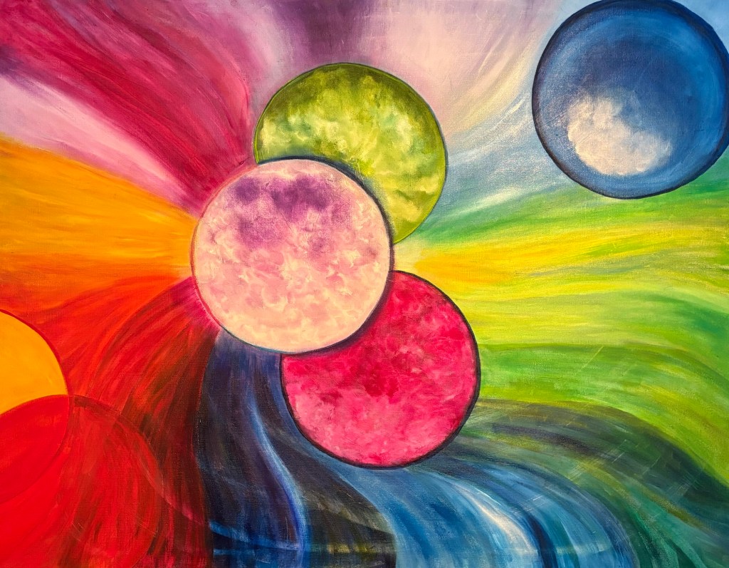 Här ser vi målningar av Wanja Wallemyr. Hon har en helt annan stil och målar med mycket färg.