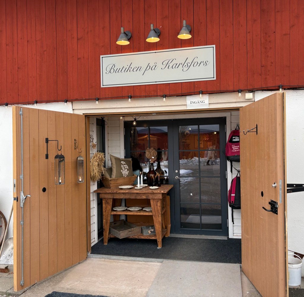 Det blev en fin dag hos min vän Anette i Skara. Efter frukost skjutsade vi vår vän Åsa till Skövde. Hon skulle ta tåget hem till Stockholm. Iréne, Anette och jag åkte till ett köpcenter där vi började med en fika. Vi hade en mysig pratstund. Sen kollade vi i några affärer.Vi styrde därefter kosan tillbaka mot Skara men körde på vackra småvägar i fin miljö. Vi stannade till vid Butiken på Karlsfors. Där fanns mycket heminredning.