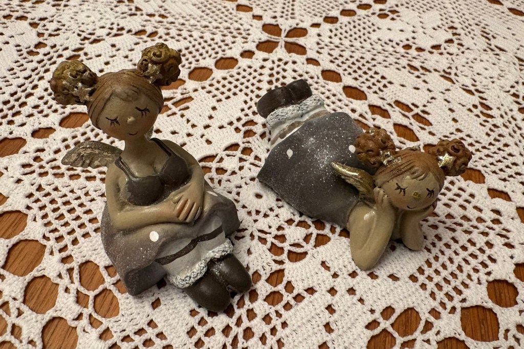 Visst är mina små änglaflickor söta? Jag köpte dem när jag var på julmarknad i Tyskland. Nu finns de här på mitt bord och gör mig glad varje dag. Små ting kan ge stor lycka.