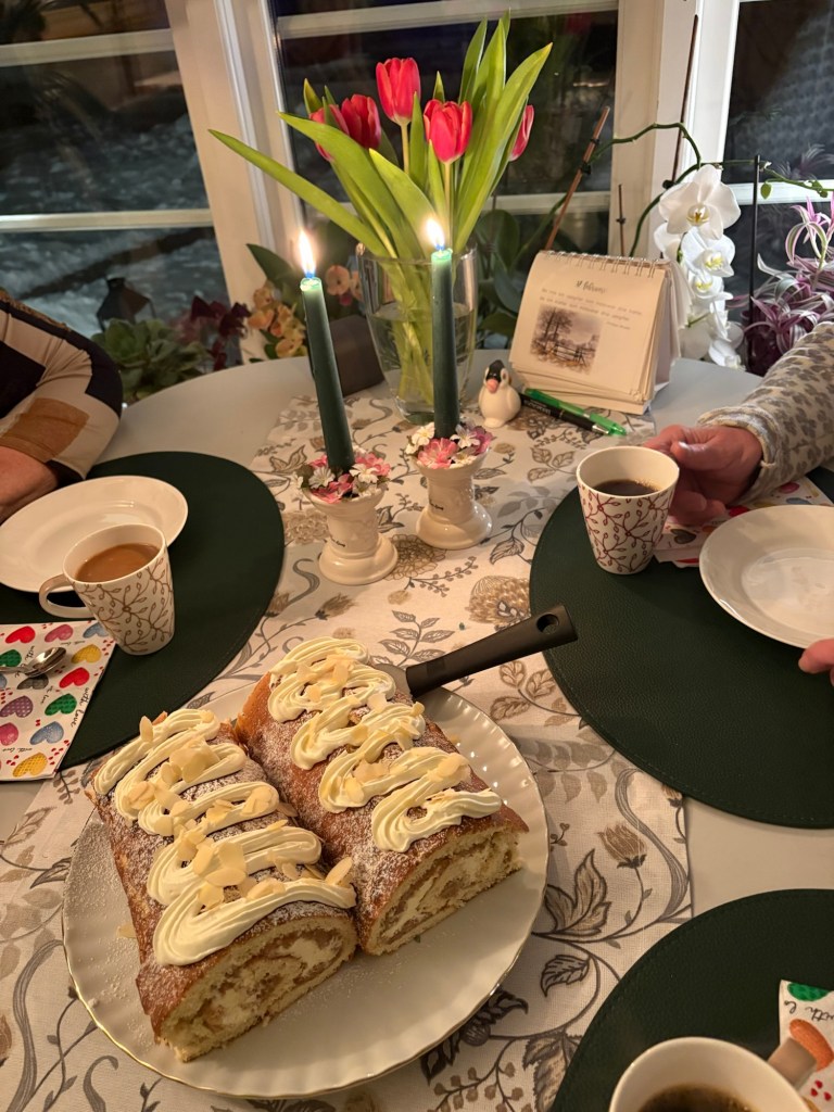 Anette och jag har haft en lugn eftermiddag och kväll. Vi har pratat och slappat. Hennes man Björn kom hem efter en helg i Stockholm med döttrarna. Vi fikade tillsammans och fortsatte prata. 😊😄😃 Det var länge sen jag träffade Björn så det var riktigt roligt att få mötas igen.