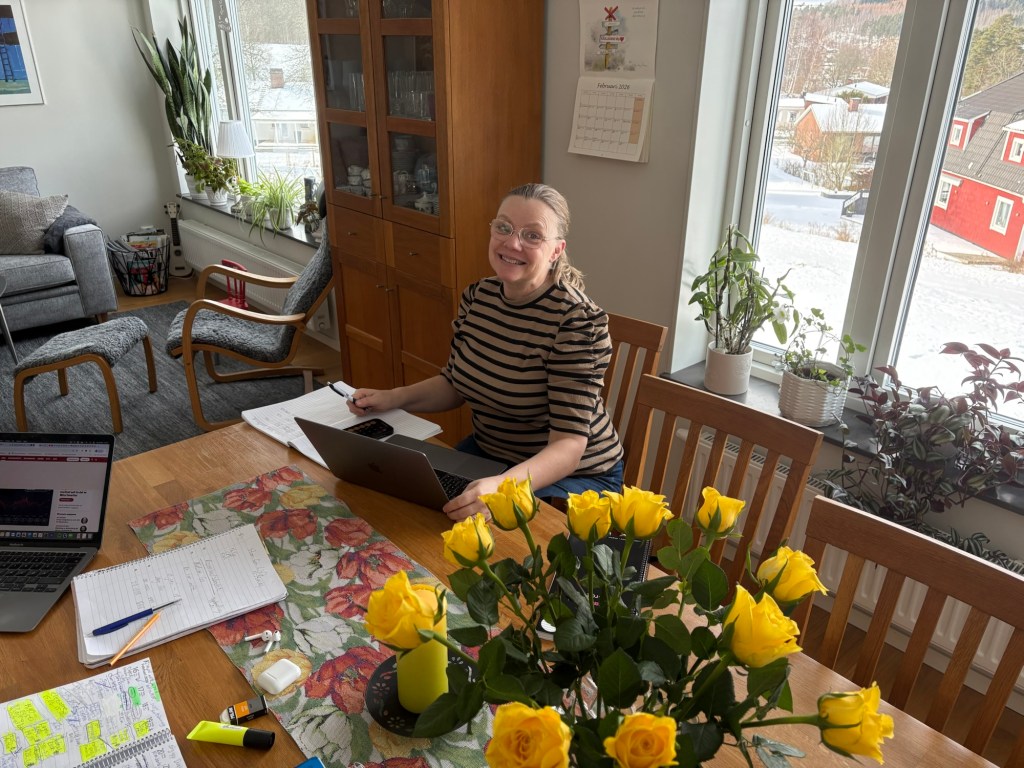När jag inte är ute på kundbesök sitter jag här hemma själv så det var jättekul med sällskap idag. I och för sig känner jag mig aldrig ensam för jag pratar med kunder stora delar av dagen. Linda och jag har så gott som daglig kontakt även när vi inte ses. Hon är bara ett telefonsamtal bort. Ibland blir det att vi hörs flera gånger per dag. Det är bra att kunna rådfråga varandra om olika grejer. Jag är oerhört tacksam för min fina kollega och vän Linda. Hon är ett stort solsken. ☀️ ☀️ ☀️ ☀️ ☀️ ☀️ ☀️