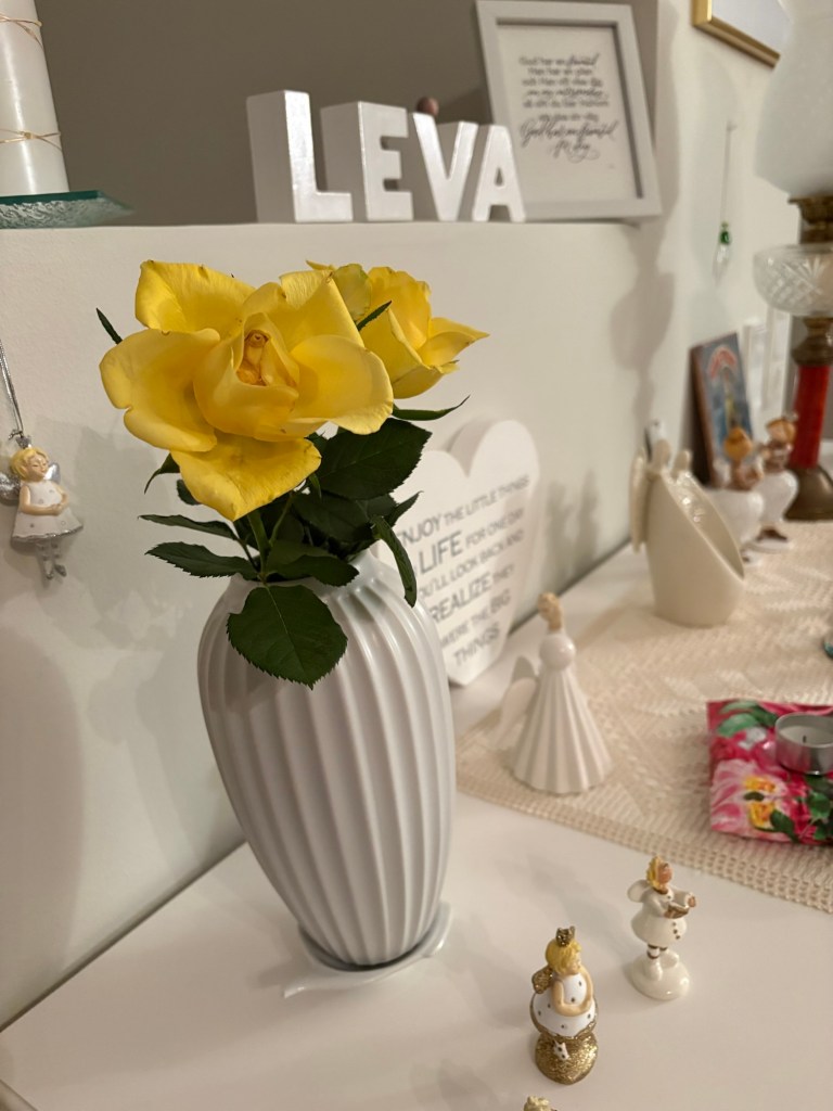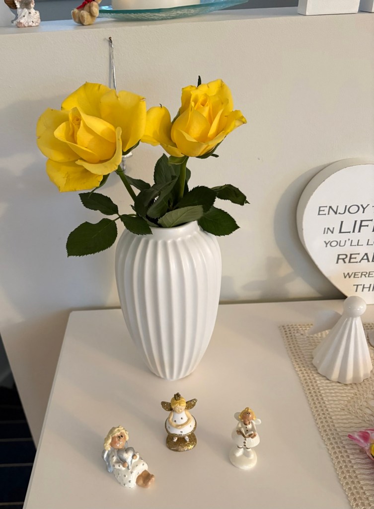 Nu har jag varit extra snäll mot mig själv igen. Det är underbart med blommor. Jag har haft en bukett tulpaner som nu börjat vissna så idag när jag var och handlade mat köpte jag dessa underbara gula rosor. Nu förgyller de hemmet och jag njuter i fulla drag.