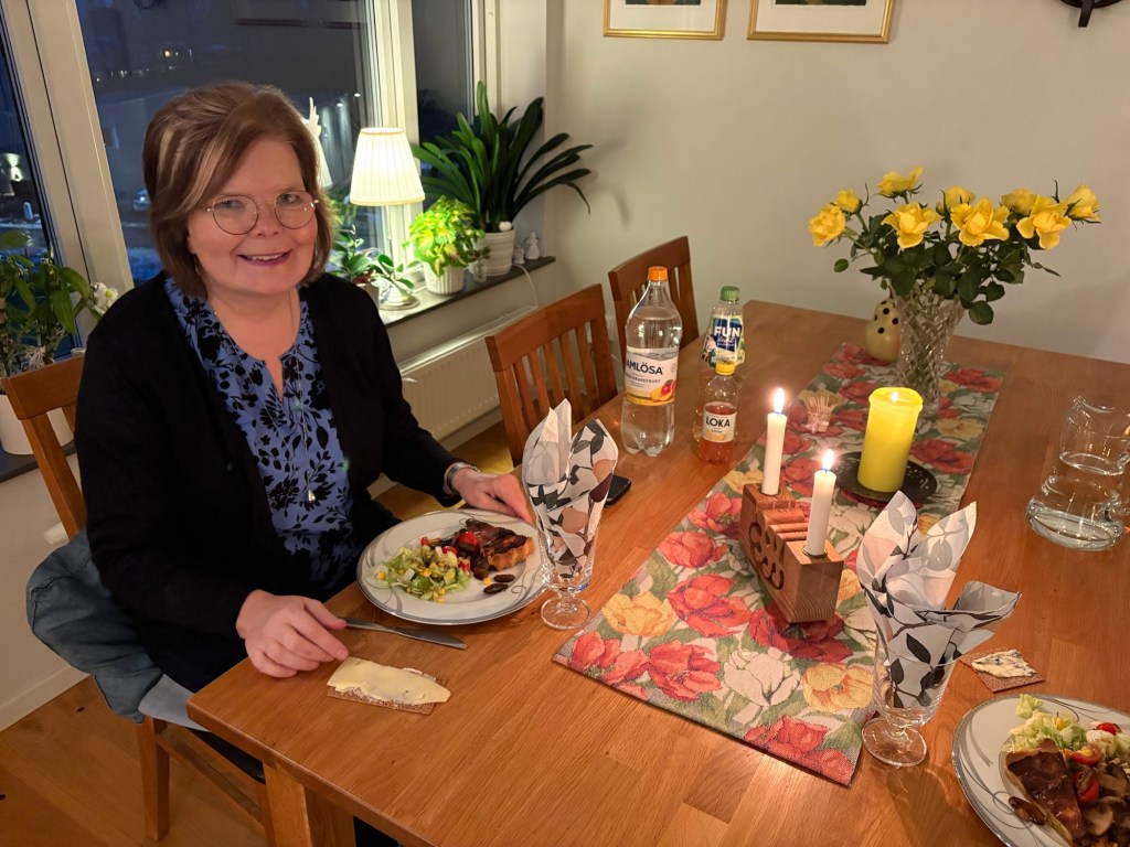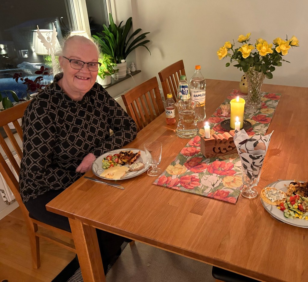 Bodil hade gjort trerätters middag så vi åt och njöt i fulla drag. Det blir alltid mycket prat när vi träffas för alla är pratglada. Så delar vi livet och ber för varandra. Det är mycket värdefullt. Nästa gång ska vi ses hos mig och det blir i april.