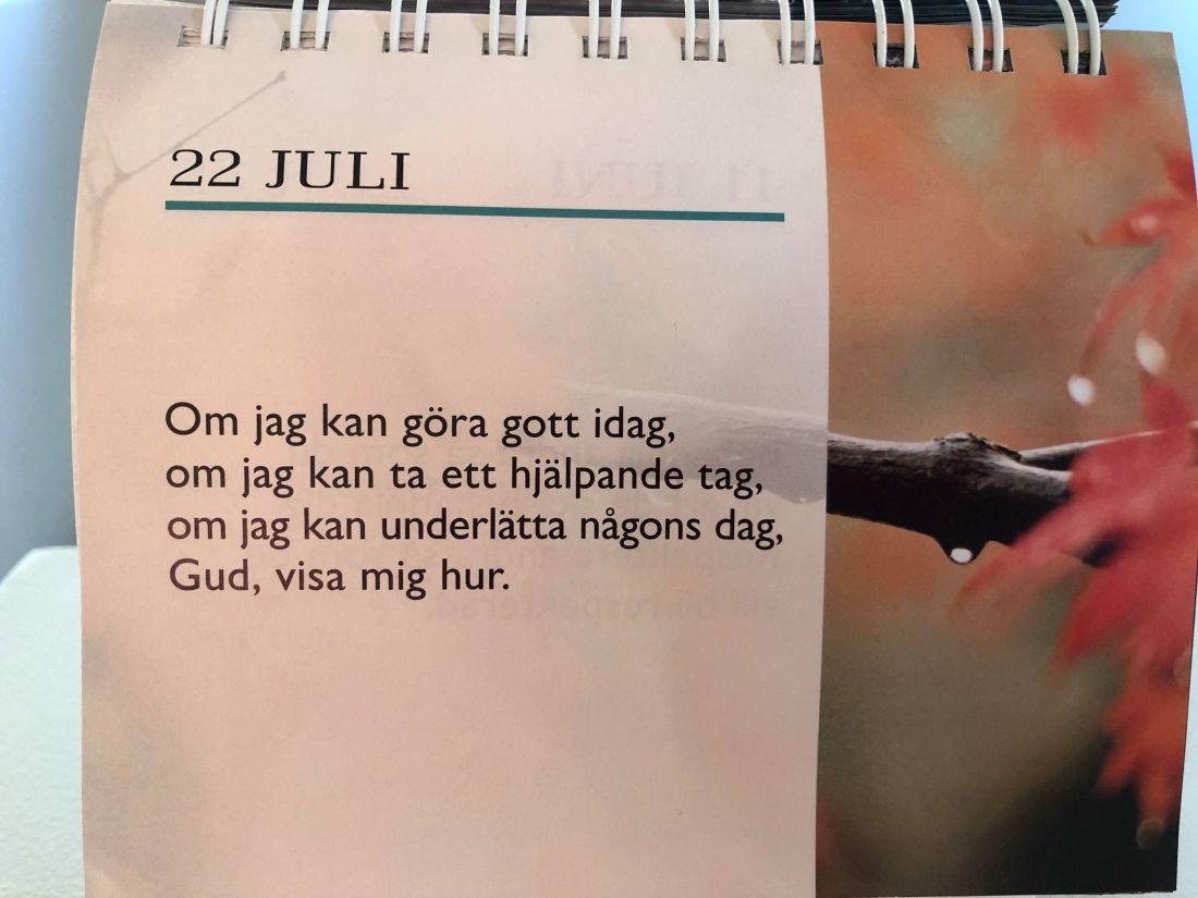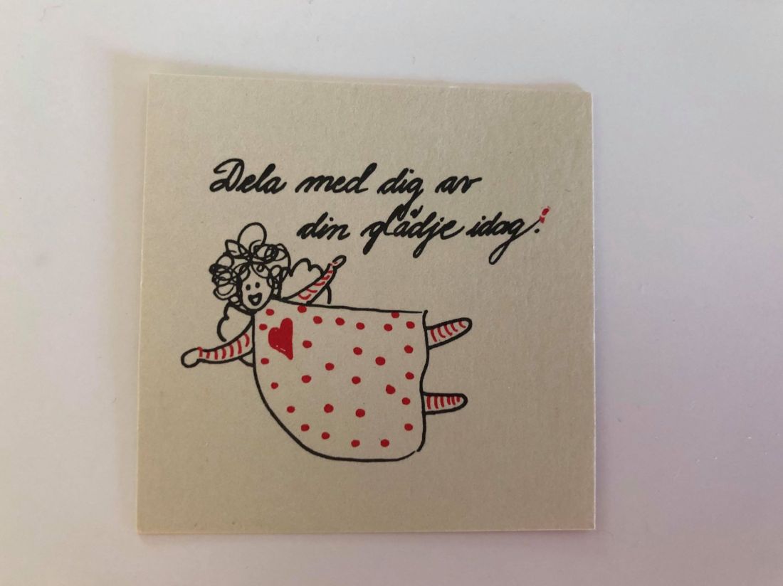 Detta lilla kort har jag liggande hemma på en väl synlig plats. Vi har så mycket att vara tacksamma för och glädjas över. Låt oss tänka på allt gott vi har. Det kommer att generera glädje i hjärtat, ja, så mycket glädje att det flödar över så att vi kan dela med oss av vår glädje till någon annan idag.
