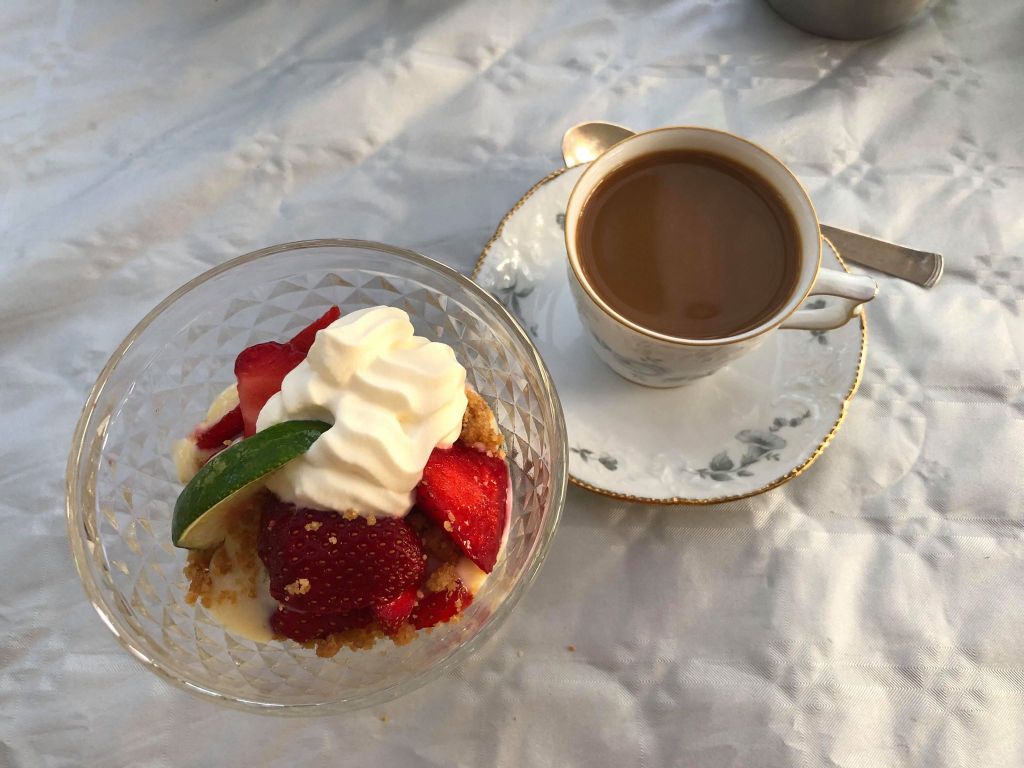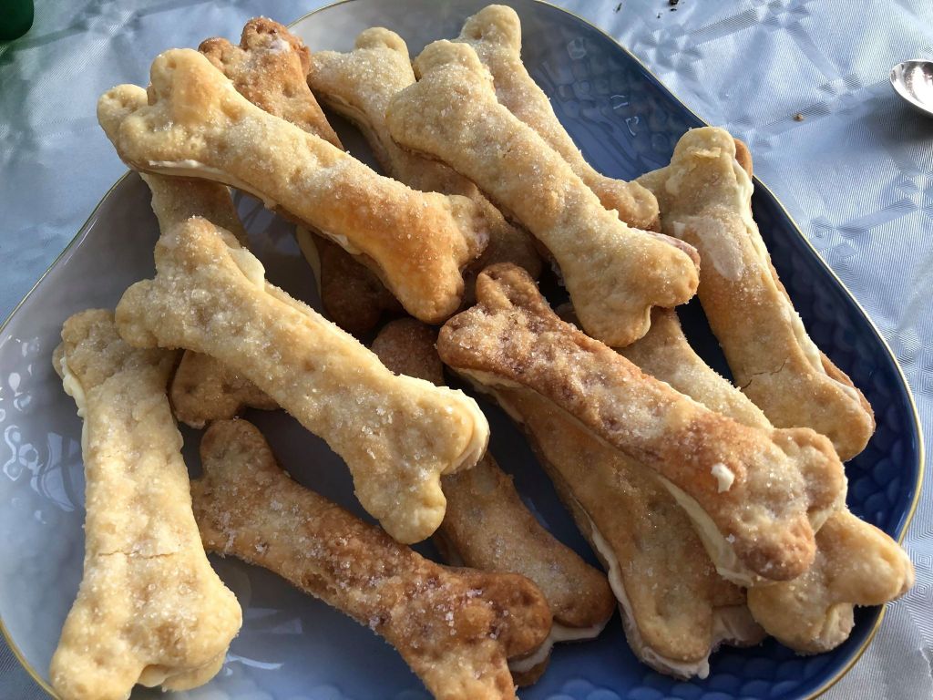Vi bjöds på mycket gott grillat såsom kött med ben, Hot Dogs, kabanoss samt goda såser, sallad, potatis m m. Vi gick en tipsrunda i skogen med kluriga hundfrågor. Sen blev det kaffe med dopp. Doppet bestod av franska våfflor i form av hundben samt hundbenskolakakor och Key lime pie, en ljuvlig dessert samt en massa godis och snacks.