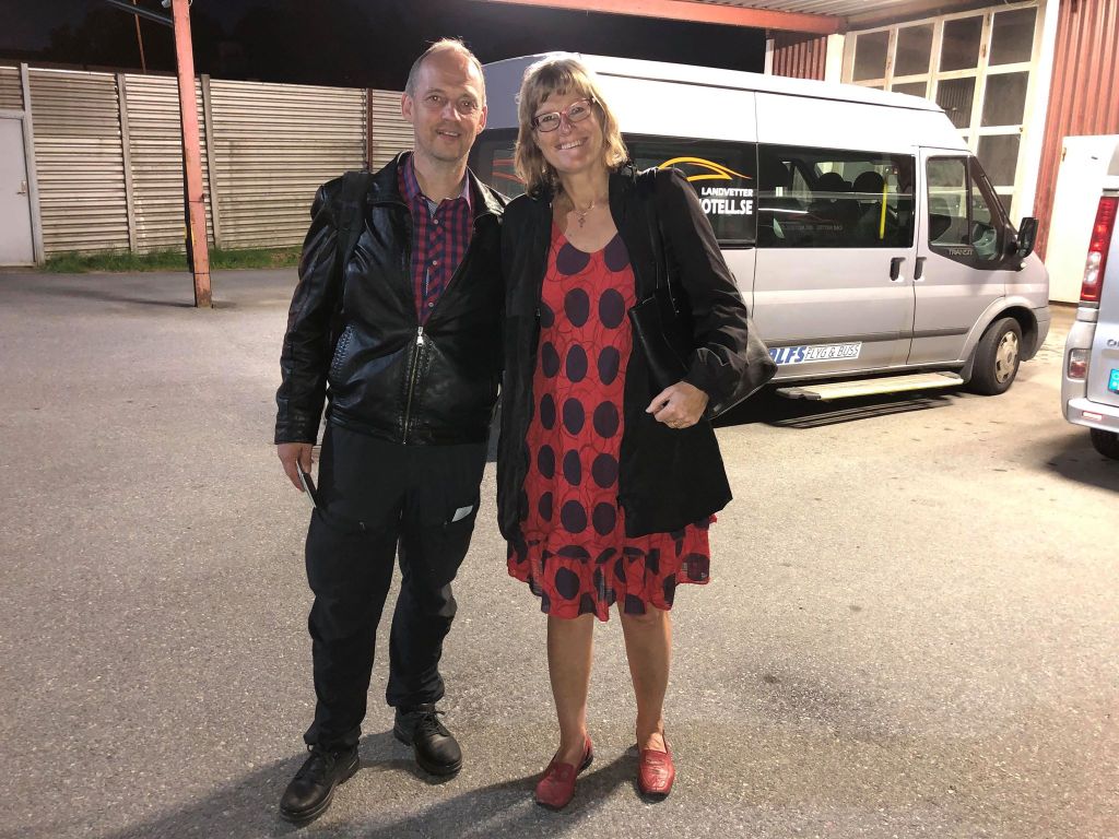 Idag kl 15.30 då jag befann mig på Vätterstranden tillsammans med min goda vän Yvonne ringde de och sa att väskan skulle vara i Jönköping inom 10 min. Inga problem – de levererade väskan till stranden. Bra service och toppen eftersom mina två bikinier fanns i väskan. Jag hade på förmiddagen varit ute och köpt en ny baddräkt för att kunna bada och var nu glad att ha några fler torra badplagg att ta på. Hans väska levererades till Skärshult senare under kvällen och då fanns det endast två väskor kvar i skåpbilen, som var ganska full med väskor i Jönköping, och dessa väskor skulle levereras till två av våra resedeltagare i södra Småland.