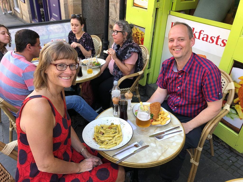 Efter en god frukost lastade vi in våra resväskor i bagagerummet och gav oss iväg till nationalmuseum där vår guide Katarina berättade en massa intressanta saker. Sen gick Hans och jag ut på stan för att uppleva ytterligare några timmar av Skottlands mysiga huvudstad. Det var soligt och vackert väder och vi gick runt i den vackra bebyggelsen och shoppade lite grand också. Vi fick se tillverkning av fudge och provsmaka den. Vi avslutade med en god lunch.