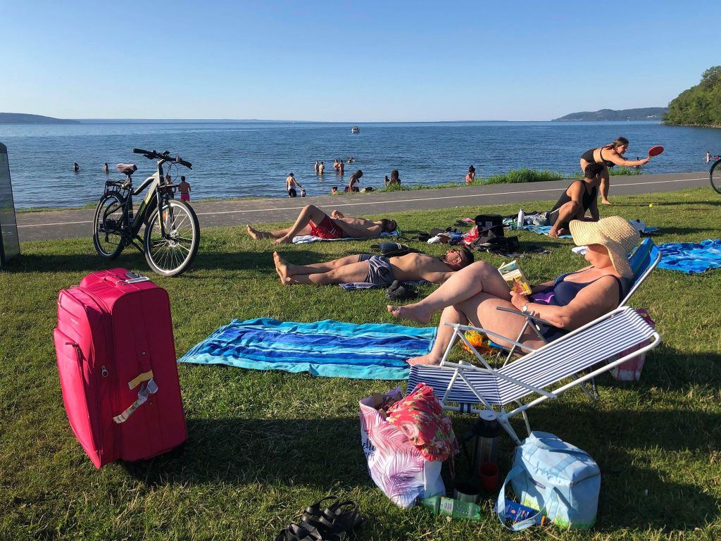På eftermiddagen träffade jag min goda vän Eva på Vätterstranden. Vättern bjöd på underbara bad i behaglig temperatur och solen lyste över oss. Framåt kvällen gick vi en runda längs med strandpromenaden till piren. Det var folk överallt, glada människor som grillade, badade och bara njöt. Detta behöver vi svenskar!