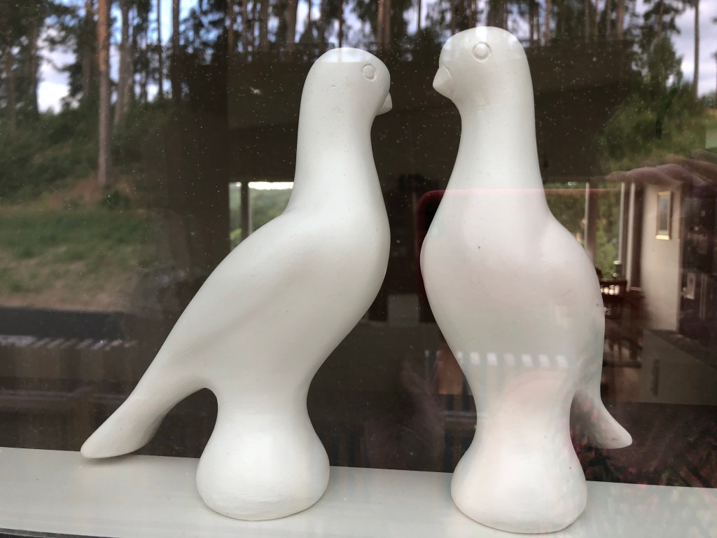 Dessa duvor har en speciell plats i mitt hjärta. Sen så länge jag minns hade min mormor och morfar ett par liknande duvor stående i ett fönster i finrummet eller ”salen” som mormor kallade rummet. Ofta kunde mormor stå i just det fönstret och vinka när någon som varit på besök skulle åka hem igen.