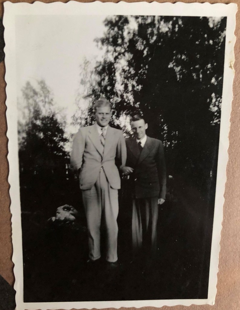 Jag har tittat i ett av pappas album och hittat så många roliga foton från hans ungdom. På första bilden är pappa till vänster och på den andra bilden till höger.