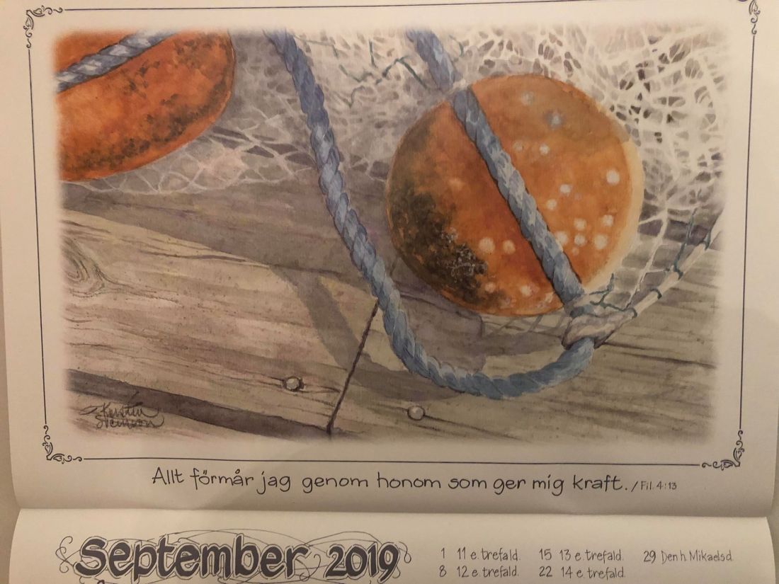 Nu har det blivit september och jag har vänt på bladet i min vackra almanacka, gjord av Kerstin Svensson. Månadens budskap vill jag ta till mig och verkligen tro att det gäller mig. Allt förmår jag genom Jesus som ger mig kraft. Filipperbrevet 4:13