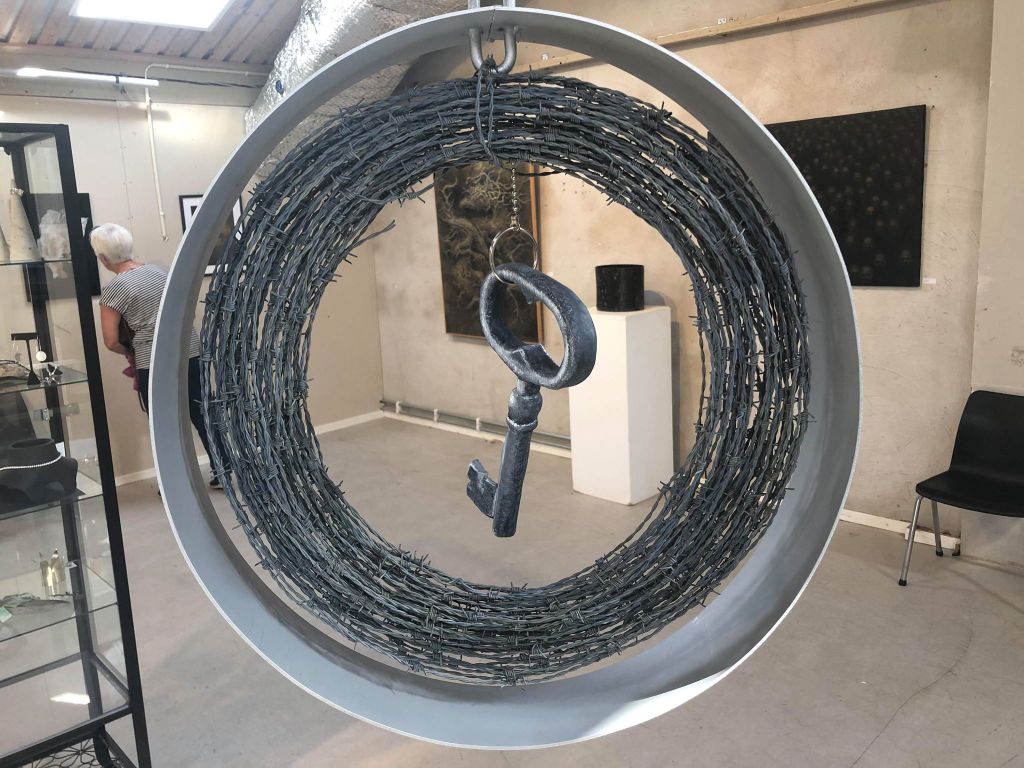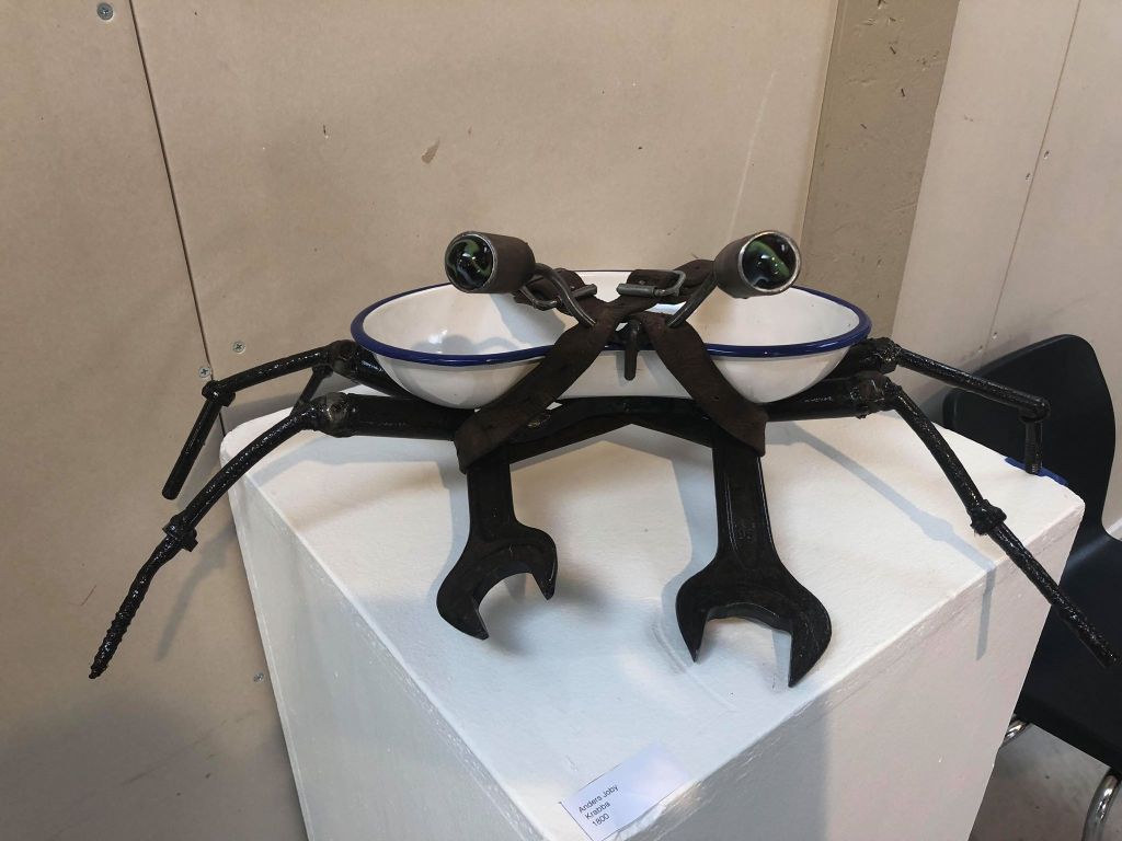 En rolig krabba tillverkad av Anders Joby och en vacker tavla målad av Emma Rydholm.