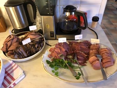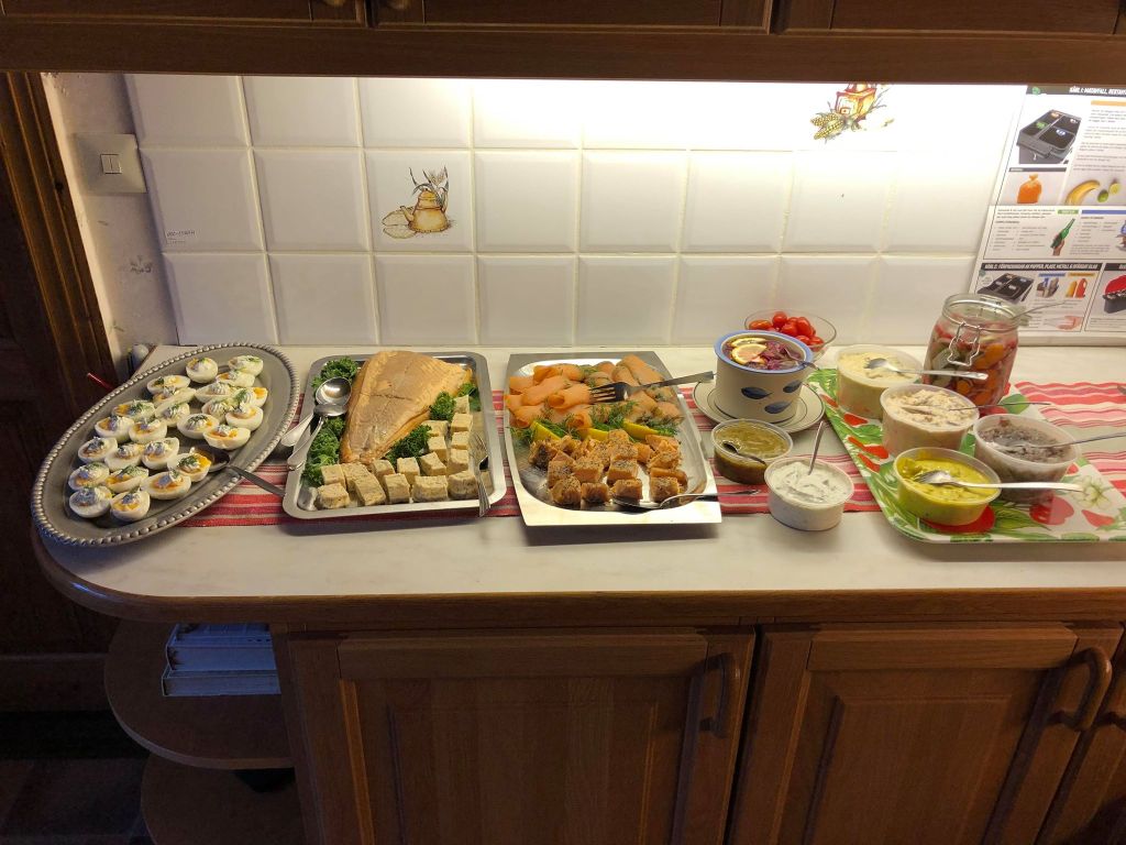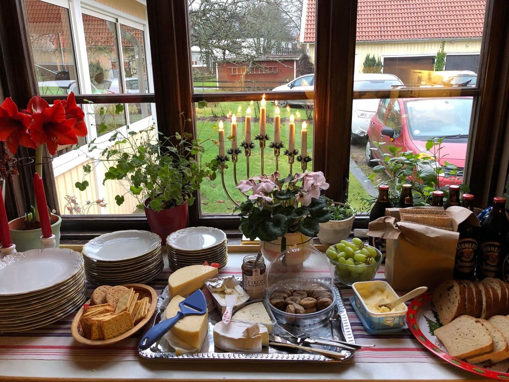 Vi har firat vår första Nyårsafton på Tallkullen. Förra året var vi inte hemma men inför denna afton hade vi bjudit in några gamla vänner som inte varit här tidigare. Så var goda vännen Monica med också. Det blev en härlig kväll. Vi åt en trerätters som bestod av: