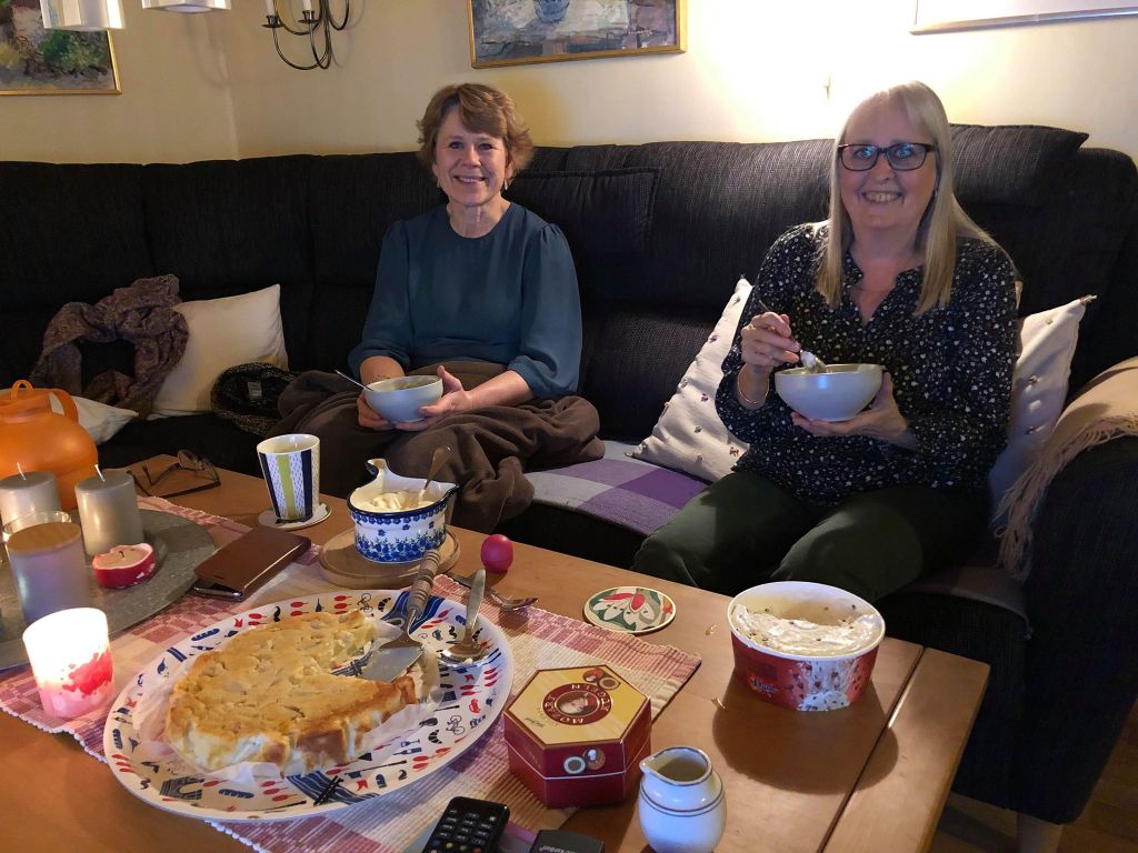 Mina goda vänner tillika franskkollegor, Gunnel och Eva, och jag träffas med jämna mellanrum på franska filmkvällar hemma hos varandra. Dessa kvällar uppskattar jag mycket. De är guldkorn i vardagen. Ikväll har vi varit hos Gunnel som bor här i Hovslätt. I vanlig ordning bjöd hon på en massa gott och vi njöt i fulla drag. Hon hade dukat så vackert med en duk från Provence. Vi såg en film som var halvbra men ändå är det så härligt att höra det ljuva franska språket. Det blev mycket prat också förstås.