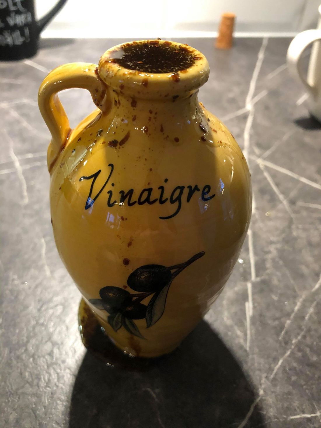 Jag gjorde oljebaserad dressing ikväll och när jag skulle hälla upp den i flaskan så råkade jag hälla i för mycket så det flödade över. Det blev först ett sådant vackert mönster så jag tog fram kameran för att ta ett kort och då fick jag en liknelse. Jag tänker på Den Helige Andes olja. Jag vill ha så mycket av den i mitt liv att den flödar över. Den Helige Ande är den bäste rådgivaren och hans närvaro är ljuvlig. Jag kommer att tänka på en gammal sång som finns i Segertoner. Det är nummer 383.