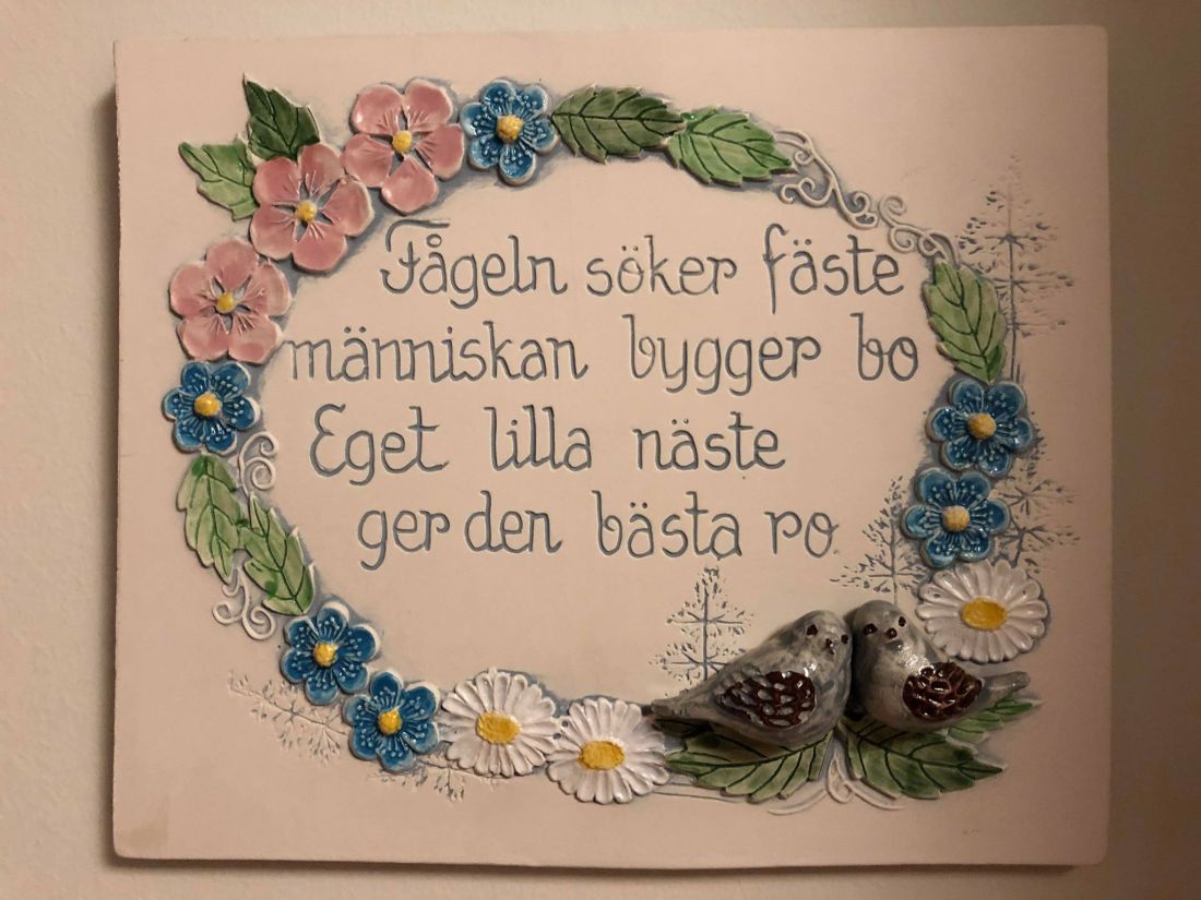 Fågeln söker fäste, människan bygger bo. Eget lilla näste ger den bästa ro.