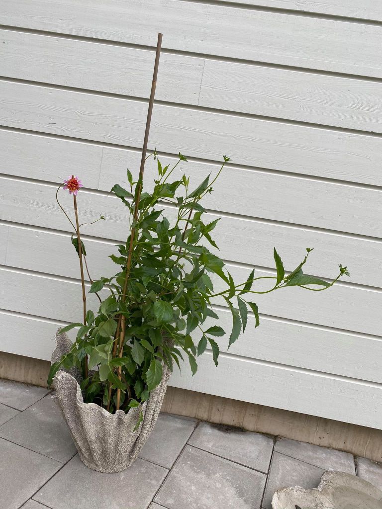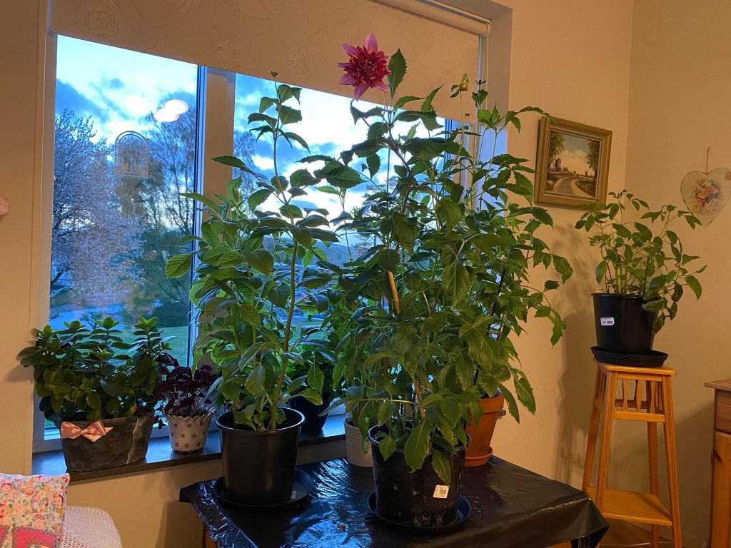 Nu har mina dahlior fått flytta ut för jag tror inte det blir någon mer nattfrost. Det var så roligt att bl.a.använda de betongkrukor som jag gjorde tillsammans med min goda vän Gunilla förra sommaren. Hoppas på en rik blomning.