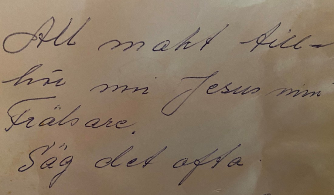 All makt tillhör min Jesus, min frälsare. Säg det ofta. Detta har mamma skrivit ned. Vilken bra uppmaning! Munnens bekännelse är viktig och betyder mer än vi tror. All makt tillhör min Jesus, min frälsare. Det vill jag säga ofta. Positiva affirmationer är toppen!