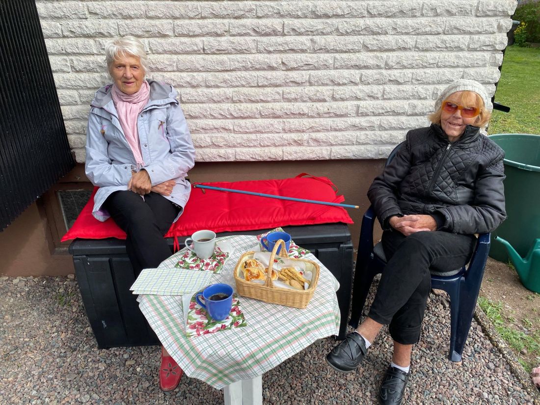 I eftermiddag blev jag bjuden på fika i trädgården. Det var snälla grannen Sigbritt som bjöd snälla grannan Inga och mig på kaffe med dopp. Så otroligt mysigt att få umgås även om inte mamma kunde vara med just idag. Det betyder så mycket.