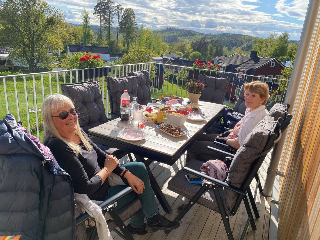 Mina goda vänner tillika franskkollegor, Gunnel och Eva, och jag brukar träffas med jämna mellanrum för att äta något gott och se på fransk film. Ikväll var det min tur att bjuda in men eftersom Gunnel är 70+ så ska hon inte besöka andra i coronatid. Att umgås på balkongen tyckte vi ändå var okej så jag dukade upp allt där och vi hade en helt underbar kväll i den ljuva solnedgången. Mot slutet av kvällen satt vi insvepta i filtar med jackor över knäna och bara insöp den ljuva kvällsluften. Umgåsen är verkligen den bästa fågeln. Jag njöt av det trevliga sällskapet och vi hade, som alltid, mycket att prata om. Vänner gör livet rikt.