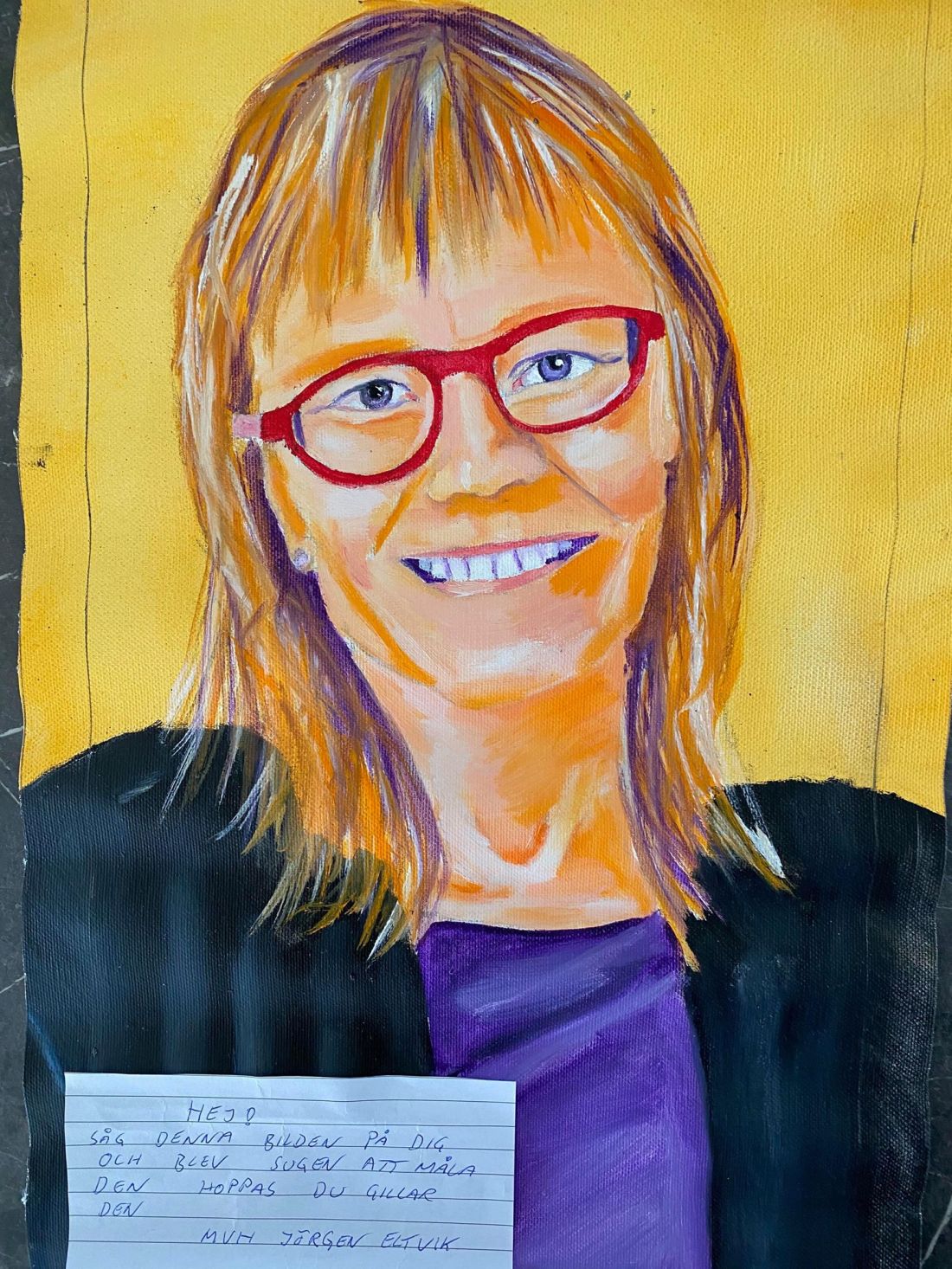 Idag när jag kom hittade jag ett runt avlångt paket i postlådan. Det är alltid roligt när man får en överraskning och detta var inte vilken överraskning som helst. Det var ett portsätt som en gammal vän målat till mig. Vi har inte träffats på massor av år så därför var det extra roligt. Han hade helt enkelt sett bilden nedan av mig på Facebook och blev sugen på att måla av den. Jag blev jätteglad. Det är kärleken bakom gåvan som värmde mig mest. Så otroligt roligt när gamla vänner hör av sig!