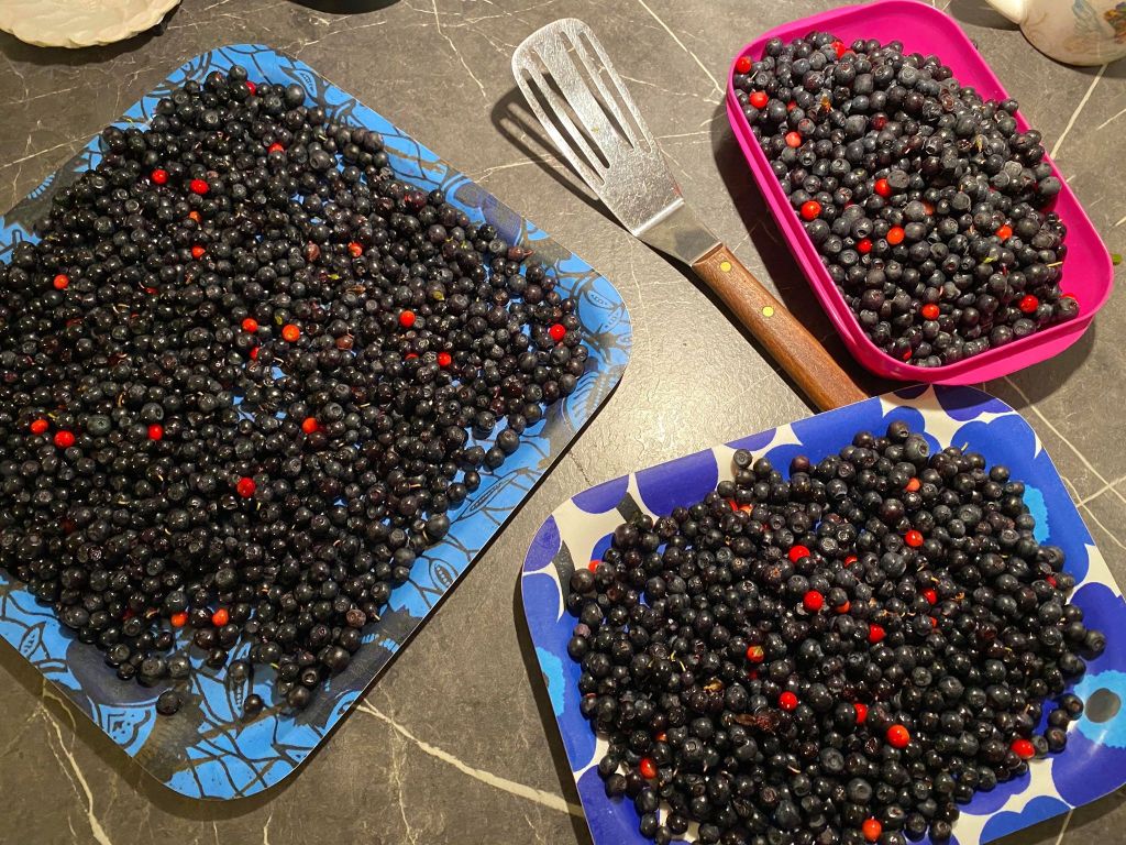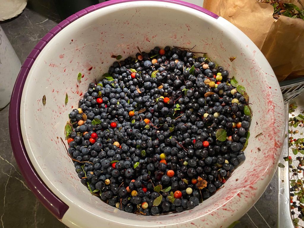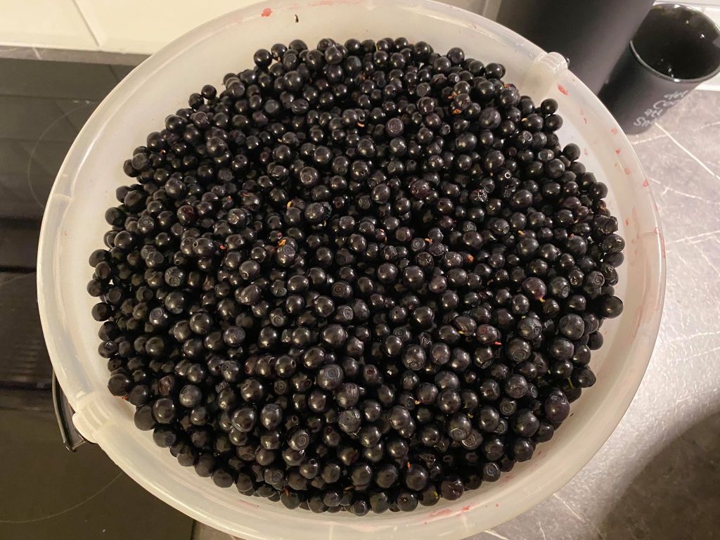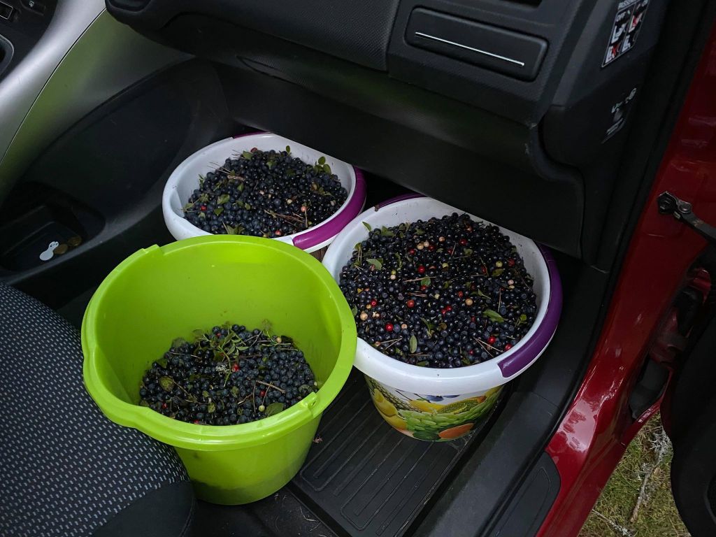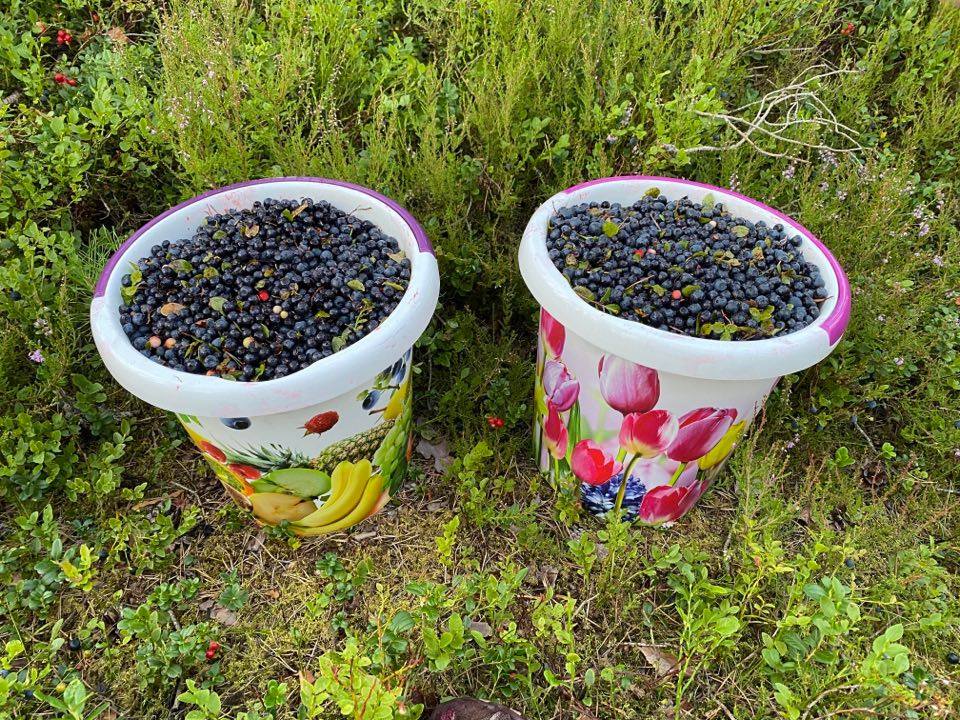 Jag har inte haft möjlighet att plocka blåbär på sex dagar och undrade om det fanns några blåbär kvar. Jag åkte ut i skogen direkt efter jobbet och blev så glad när jag fick se alla blåbär. Jag var endast på ett litet område och njöt av att få vara ute och repa in dessa superbär. Jag njuter av den härliga miljön ute i skogen. När jag väl rensat alla bär blev det ungefär 13 liter ikväll. Nu ska jag testa att torka en del av blåbären för jag kommer inte att ha plats med alla i frysen. Fortsättning följer om detta projekt.