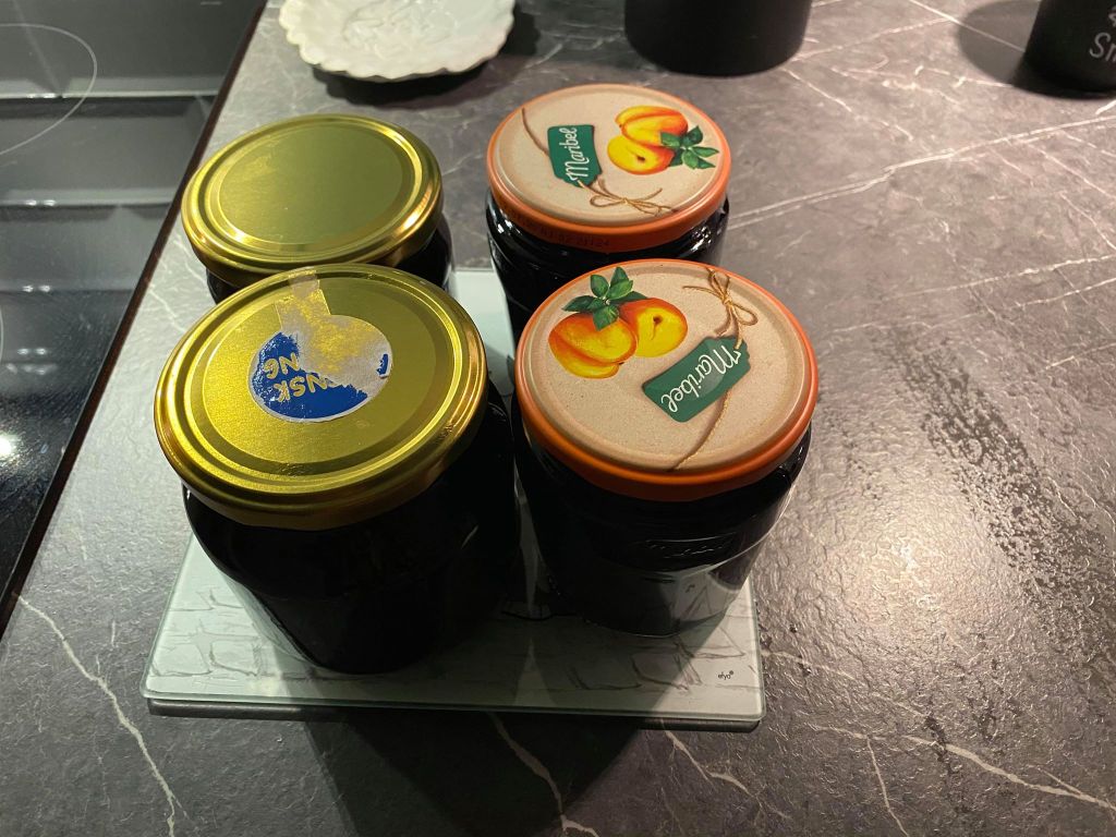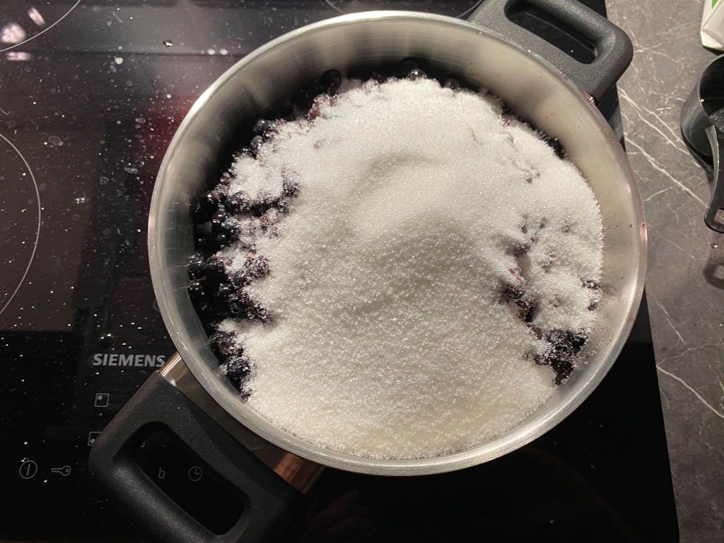 När jag kom hem och hade rensat så mycket jag hann innan mörkret föll på började jag styckfrysa blåbären. Min make har önskat blåbärssylt så jag gjorde det. Jag tror inte jag gjort blåbärssylt någon gång tidigare. Så enkelt och så roligt! Det blev fyra burkar.