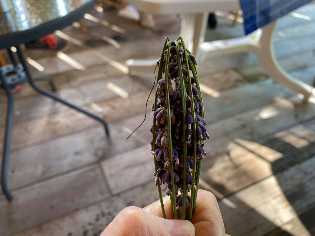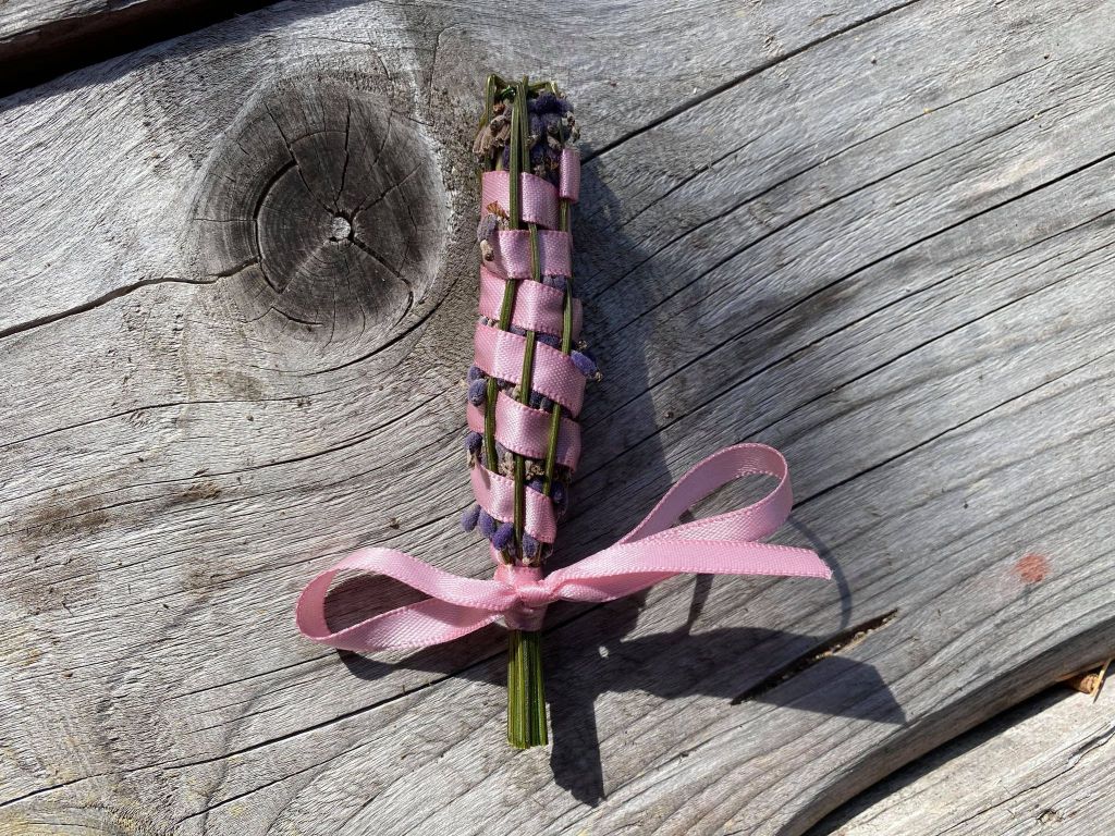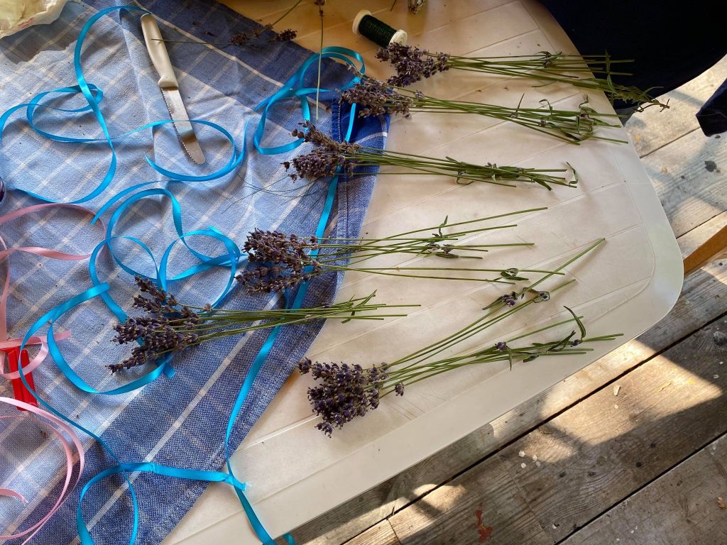Sen skulle Lena lära oss att göra lavendelkorgar. Det var verkligen roligt att få lära sig. Jag gjorde två stycken. Jag älskar lavendel och har det själv hemma så det blir nog fler lavendelkorgar framöver.