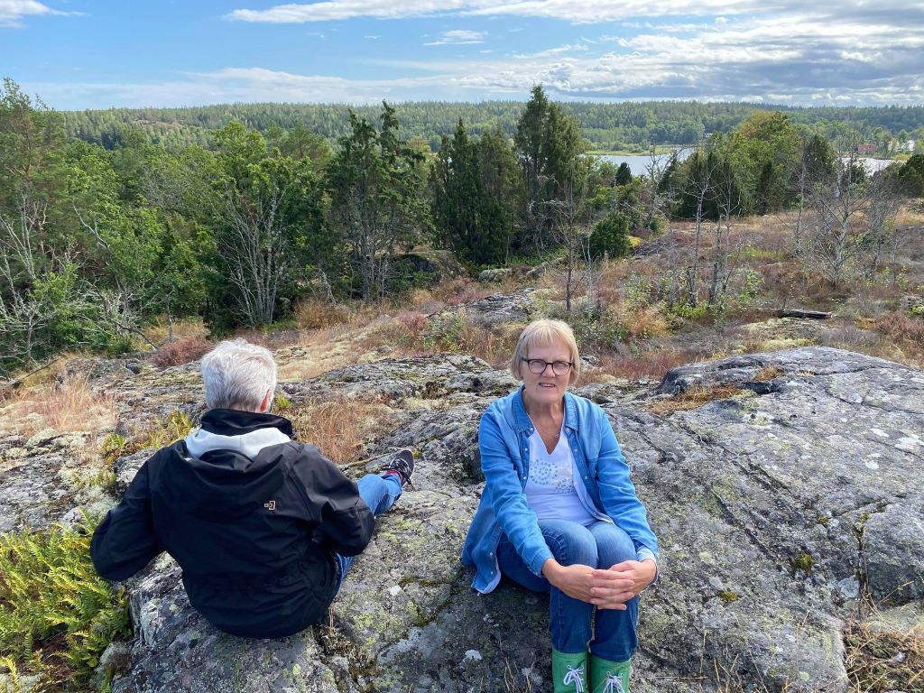 Under lördagen fick vi besök av Helena (i gul jacka nedan) som är en ny bekantskap för mig. Trevligt att lära känna nya vänner. Vi gick en liten promenad i Blankaholm och tog oss sen upp på en höjd där vi satt och njöt av den fina utsikten.