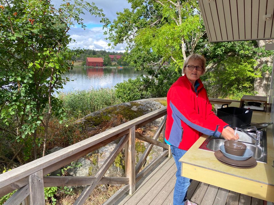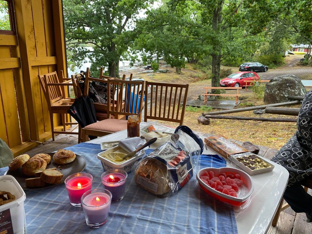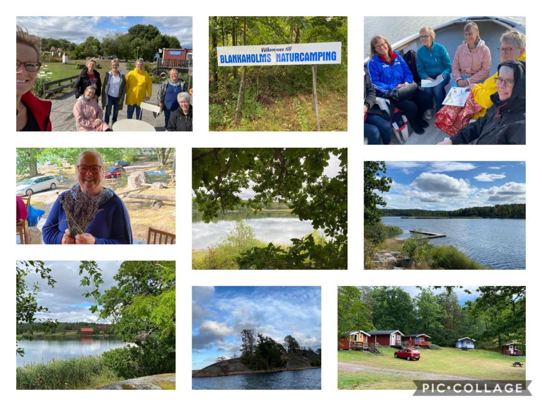 I helgen var det dags för den årliga tjejhelgen med gamla gänget. Ja, det är vi som en gång var tjejer och som fortfarande känner oss som det. Igår, strax efter kl 10, möttes vi på Blankaholms Naturcamping som ligger 3 mil söder om Västervik. Regn var utlovat och just då öste regnet ner. Vi hade förstås bett till himmelens Gud om uppehållsväder över Blankaholm och det visade sig bli så. Strax efter ankomst upphörde regnet och det började skina upp. Vi installerade oss i våra stugor och fixade till det på scenen som skulle bli vårt allrum så här i coronatid.