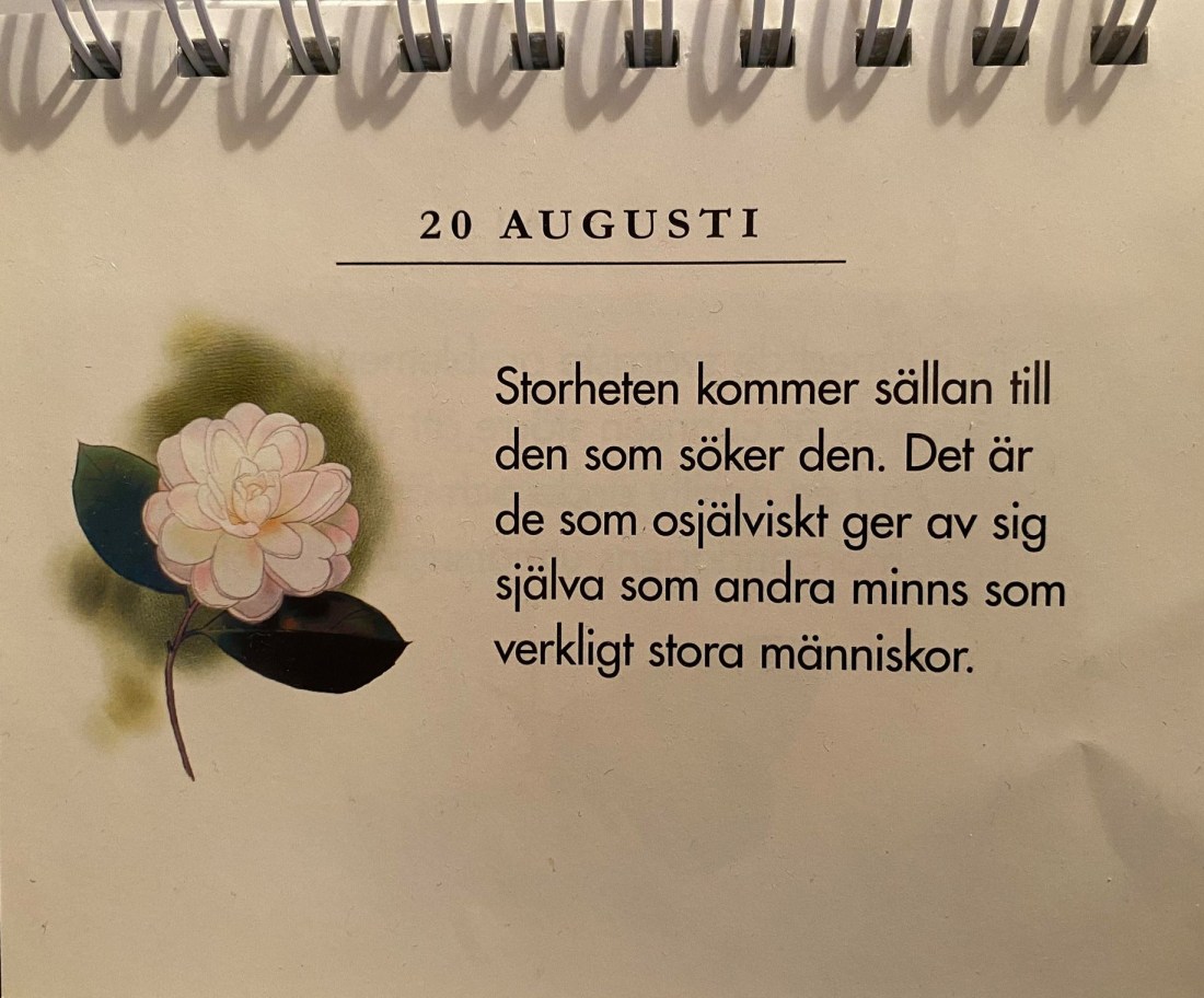 I min kalender Tankar om Livet 2 finns idag följande text: