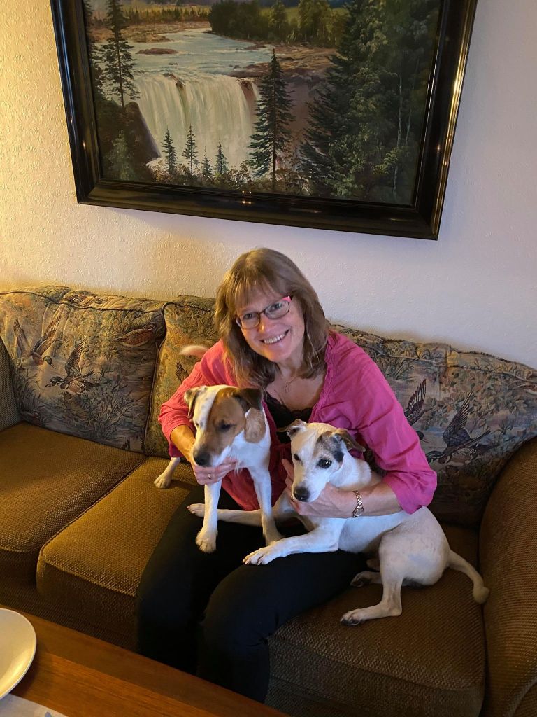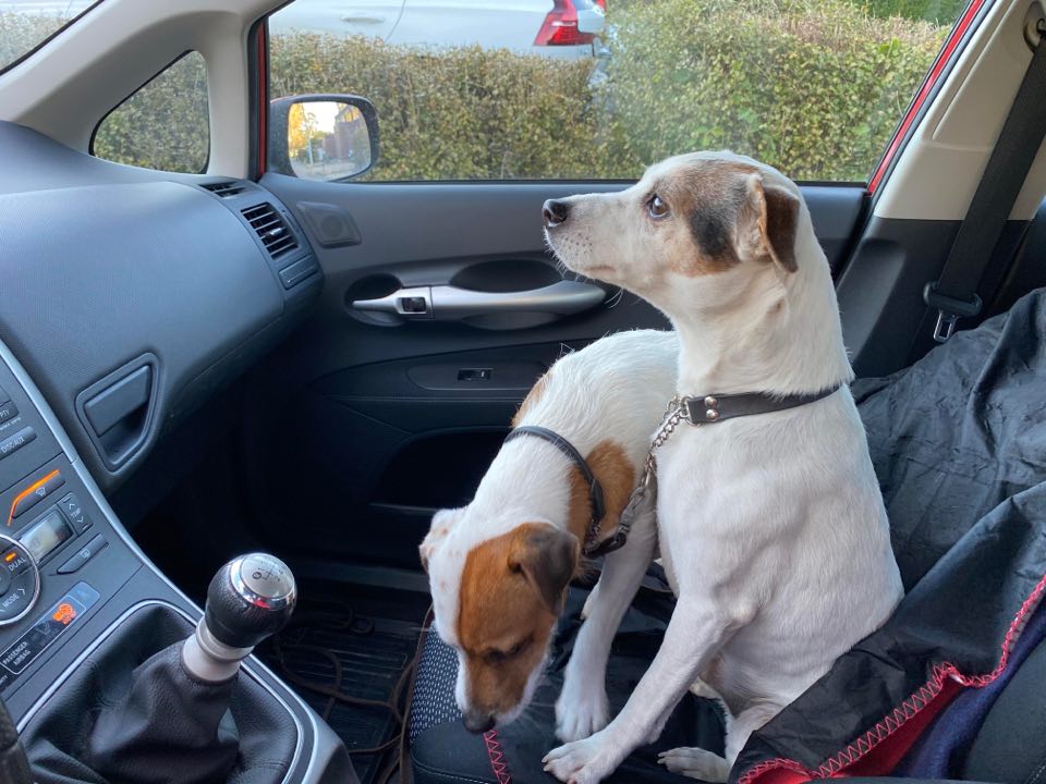 Jag har haft en underbar dag. På förmiddagen grejade jag i trädgården och hade tre härliga timmar. Kl. 14 träffades Susanna och jag hos vår vän Kicki som opererades för en tid sen. Vi hade med varmrätt och efterrätt som vi bjöd henne på. Hon tände i den öppna spisen och gjorde det så mysigt. Vi satt länge och pratade. Det var en jättetrevlig stund. Susanna och jag gick också ut en runda med hundarna. Jag älskar hennes mysiga hundar, Zumo och Zack. De är av rasen Jack russell terrier.