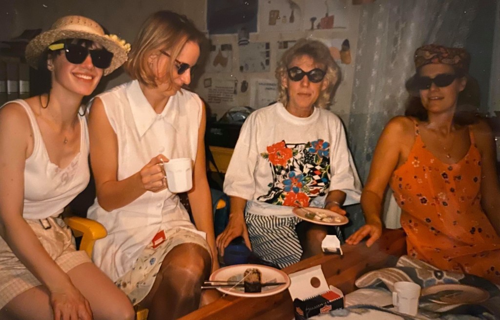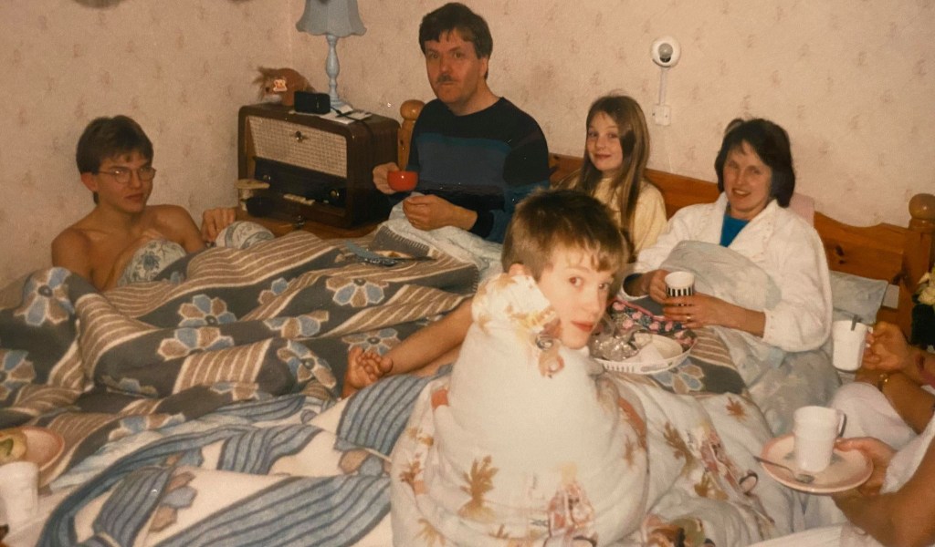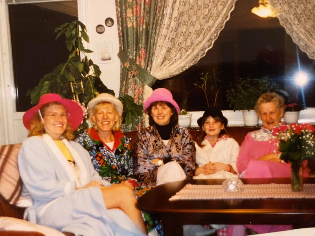 Så är det födelsedagsbilder från glada upptåg på 90-talet då vi uppvaktade vänner på deras födelsedagar. Mamma och Gun-Britt uppvaktar vid midnatt vår pastorsfru Bjarnette som fyllde 50 år. Vi ser fina familjen Tallberg i mitten och till höger sitter Karin, Paula, Britt-Marie och jag själv.