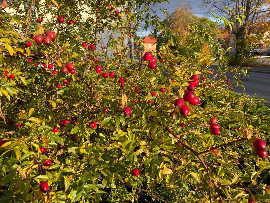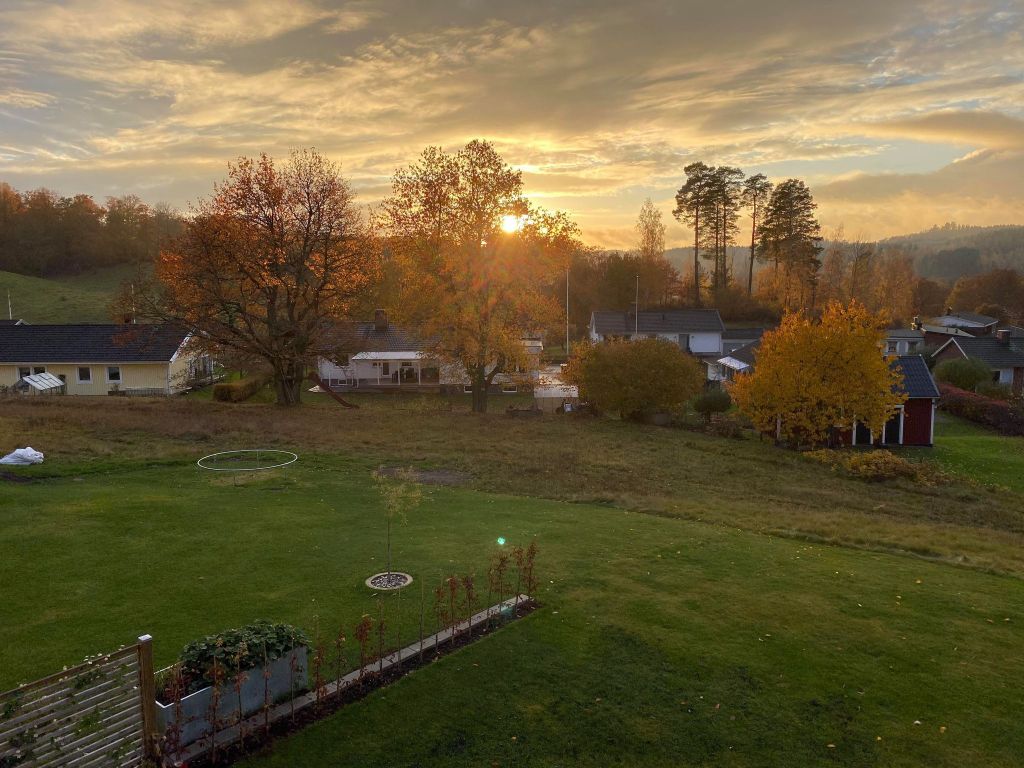 Sen gick jag en egen promenad. Jag gick runt i olika bostadsområden här i Nybro. Jag passerade hus som vänner tidigare bott i och många minnen väcktes till liv vilket är härligt. Jag gick även i nyare områden. Jag passerade bl. a. denna häck med vackra höstfärger. Det är otroligt vackert ute nu. Jag njuter i fulla drag.