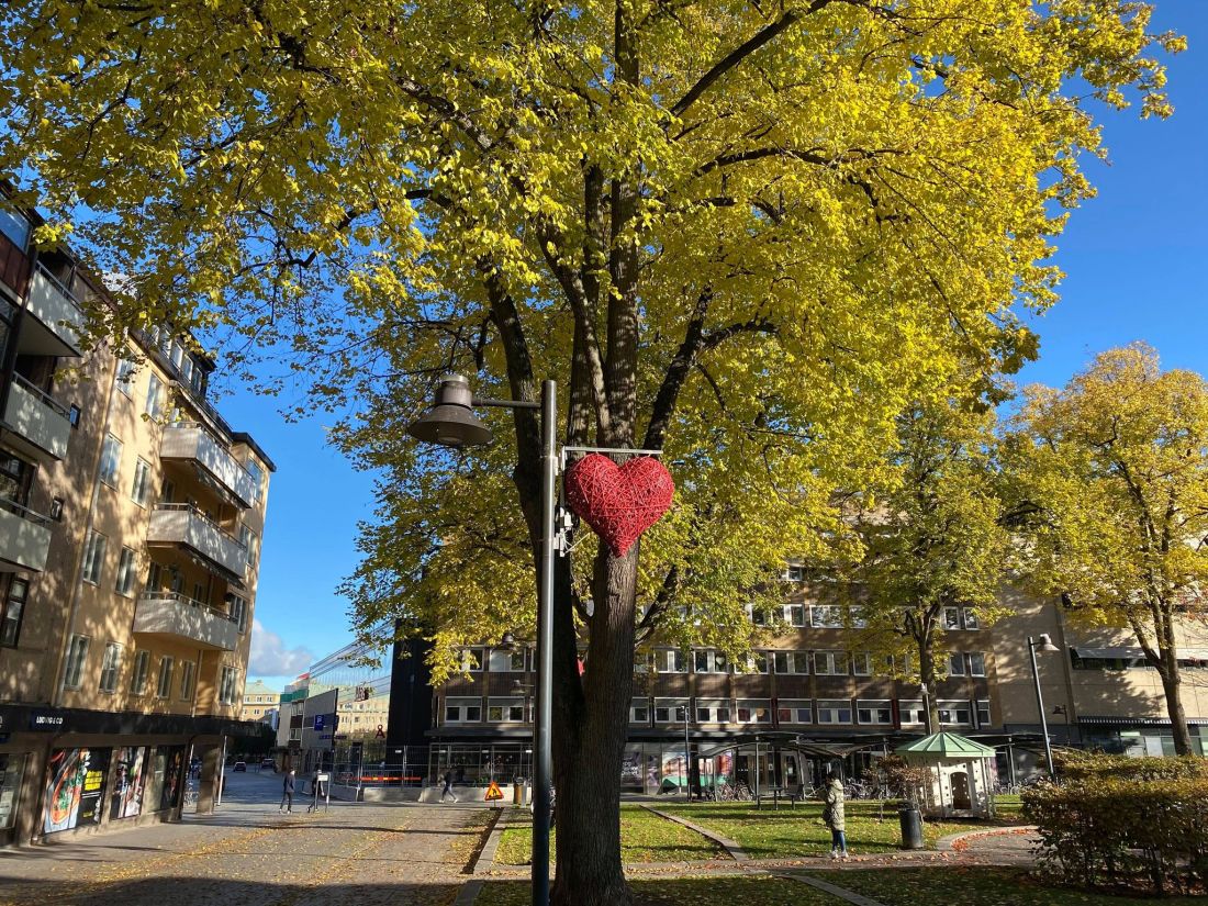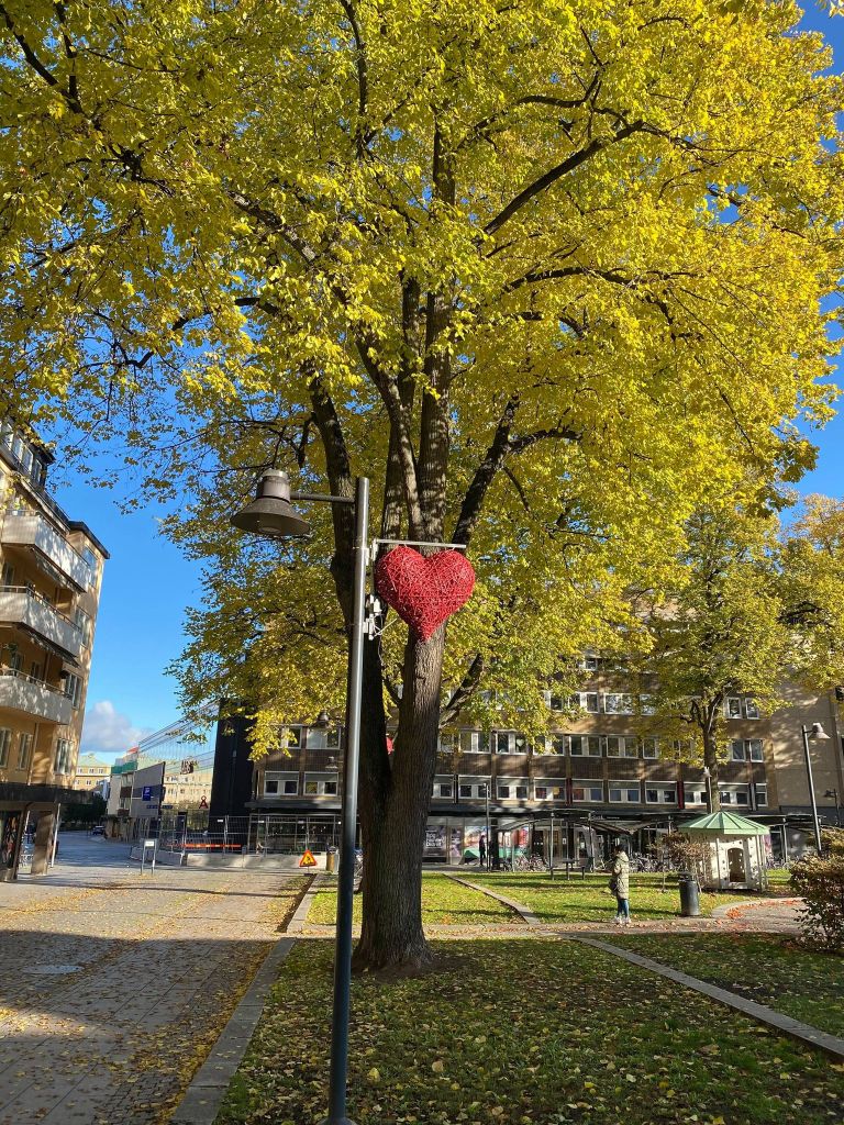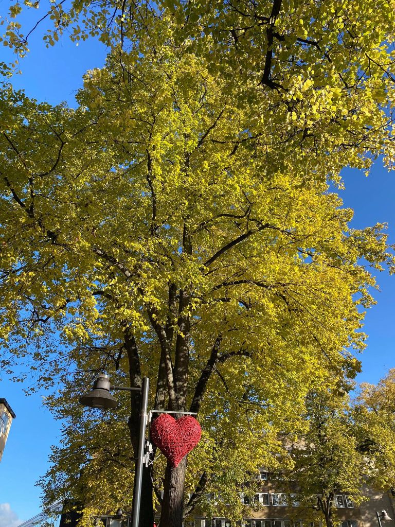 Jag gillade hjärtdekorationerna de hade i de höstlika träden. Det var så mysigt.