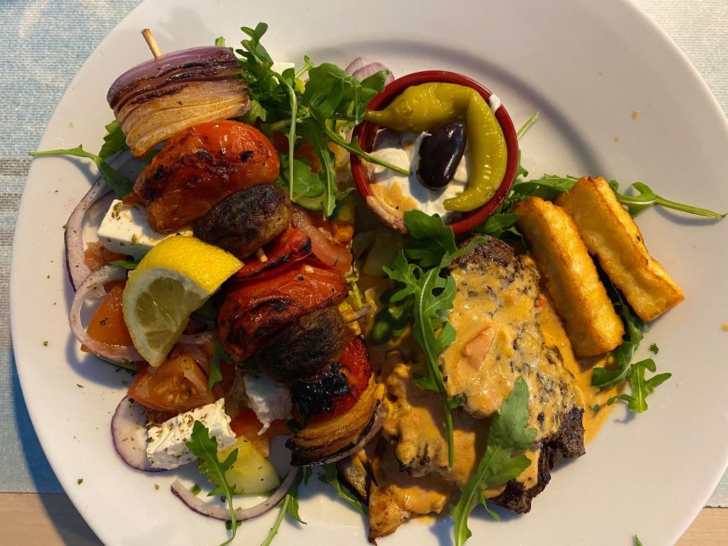 Vi åt sen på en grekisk restaurang. Det var kanongott.