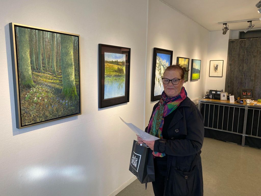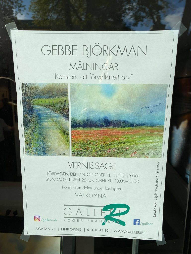 Vi gick förbi Galleri R där Gebbe Björkman hade vernissage under temat ”Konsten att förvalta ett arv”. Gebbe Björkman skapar lustfyllda målningar och akvareller med naturmotiv. Han bor i Ödeshög och har naturen kring Tåkern, Omberg och Vättern som sina främsta inspirationskällor.