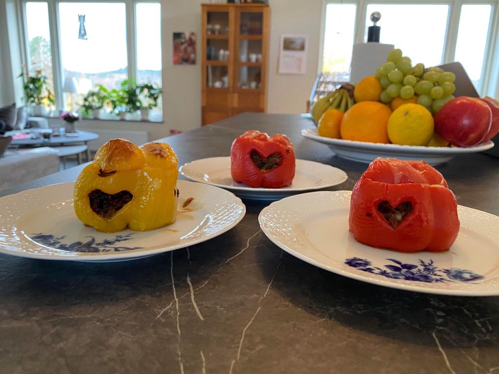 Så här på Allhelgonadagen kändes det fint att få göra färsfyllda paprikor med hjärtan. Det är bättre än spöken och andra läskiga figurer som man annars ser mycket av under Halloween. Jag gillar inte det. Det finns tillräckligt med skräck och rädslor i vårt samhälle. Vad världen behöver är kärlek och ännu mera kärlek!