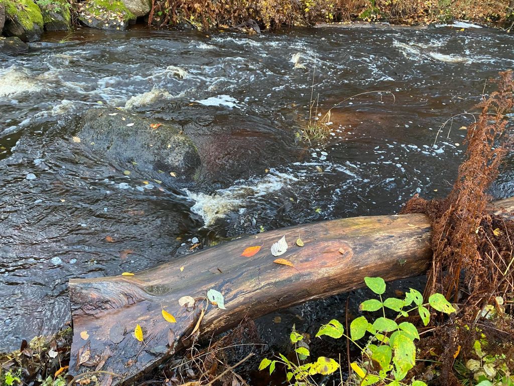 Vi tog en promenad ner till hembygdsgården där Tabergsån rinner förbi. Laxöringen leker där just nu och vi hade hoppats på att få se detta. Tyvärr såg vi inget. Det var i vilket fall som helst härligt att komma ut en stund. Solen sken vilket var helt underbart.