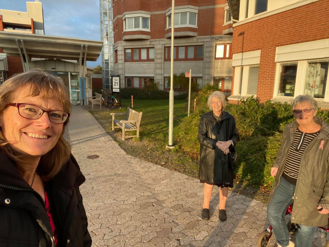I eftermiddag har mamma och jag varit på återbesök på sjukhuset i Kalmar. Den behandling hon fått har gett goda resultat så vi var glada när vi gick därifrån. Ännu gladare blev vi när moster Solveig, som bor ganska nära sjukhuset, smsade att hon tänkte ta en promenad för att möta upp en stund utanför sjukhuset.