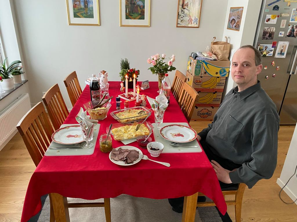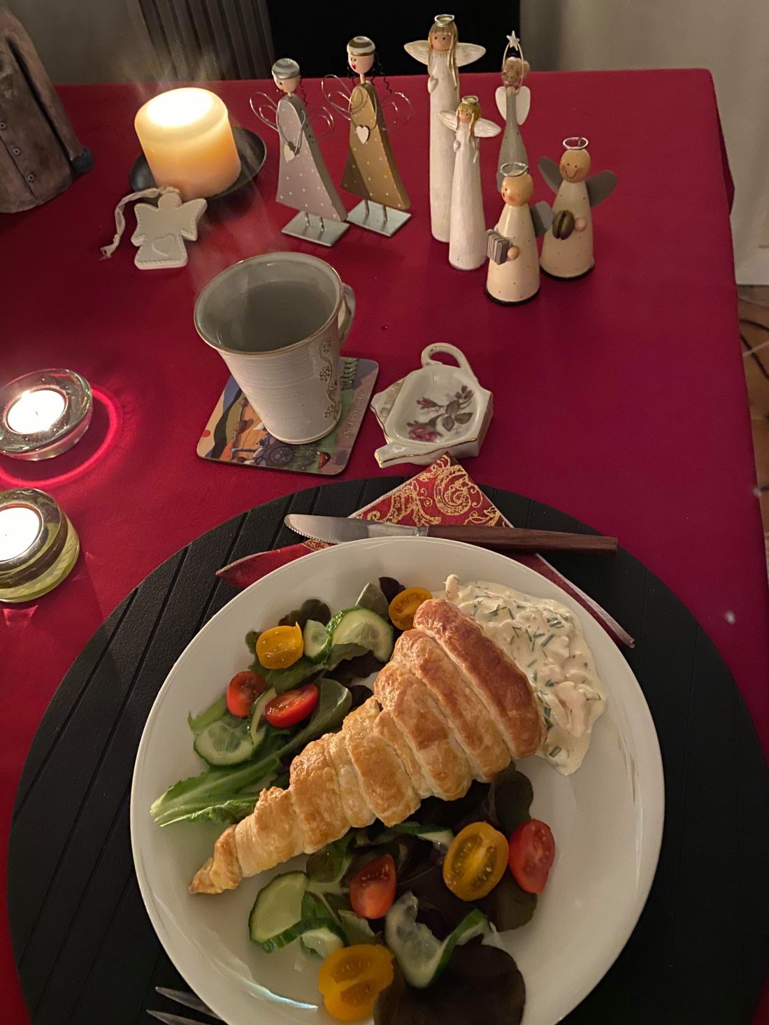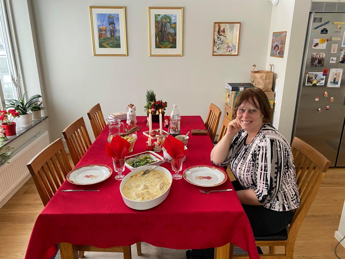Ikväll har jag varit hos min goda vän Yvonne. I december när hon hade julpyntat berättade hon att hon lagt på en ny röd duk på sitt matbord. Jag var då hos mamma och visste inte hur länge jag skulle bli kvar eftersom vi visste att mammas dagar var räknade och att hon inom kort skulle flytta till himlen. Jag hade bestämt mig för att stanna kvar hos mamma så länge hon levde men Yvonne sa att hon inte skulle ta bort duken och julpyntet förrän jag hunnit besöka henne. Jag såg fram emot att få besöka henne och sitta vid den röda duken. Ikväll var det dags.