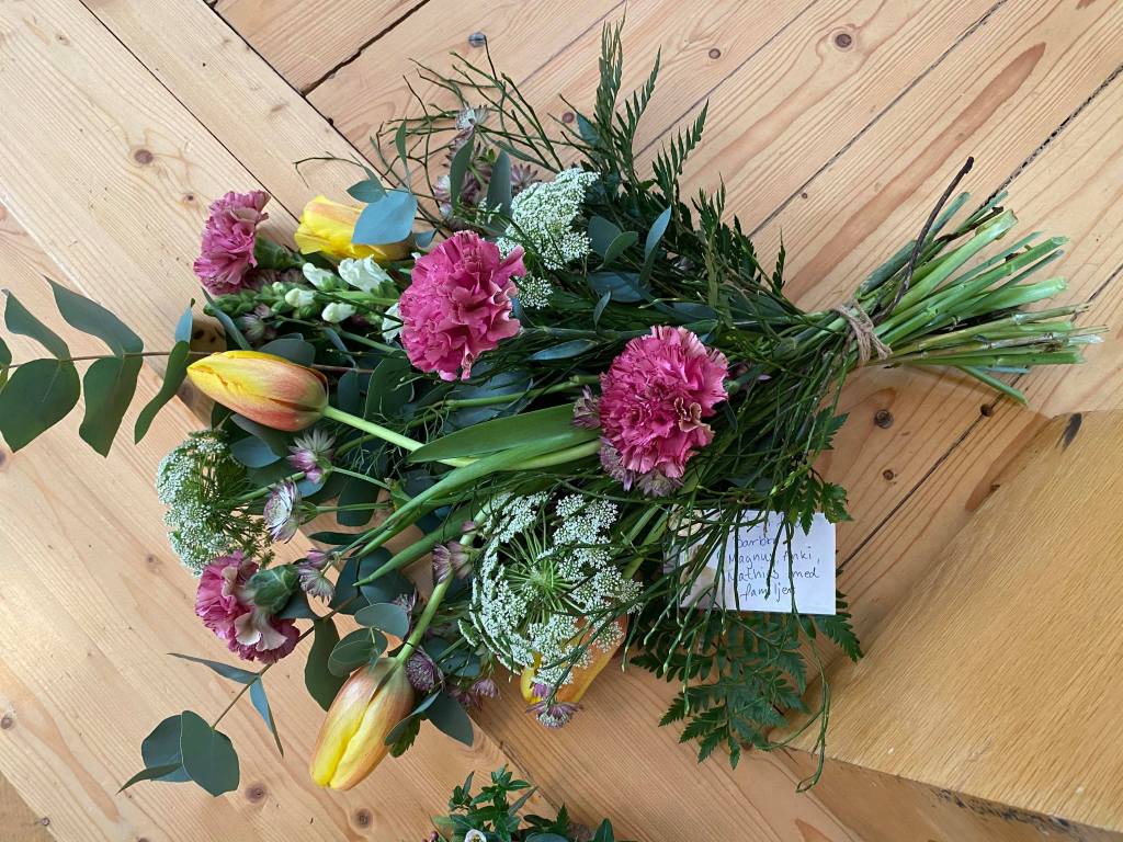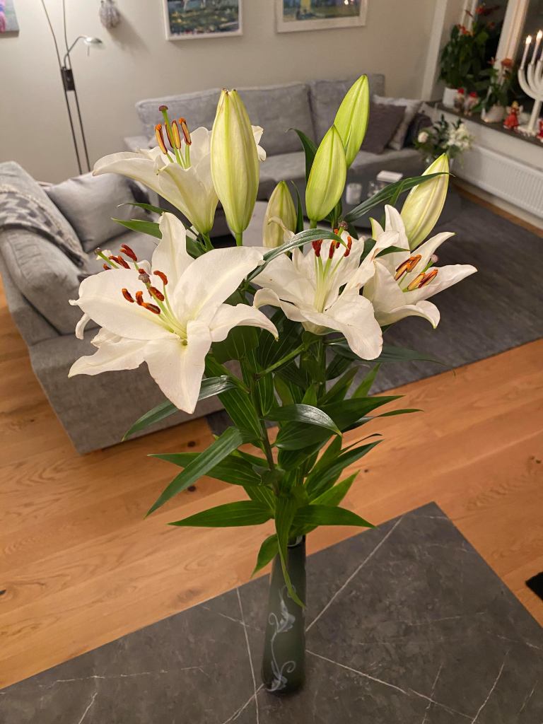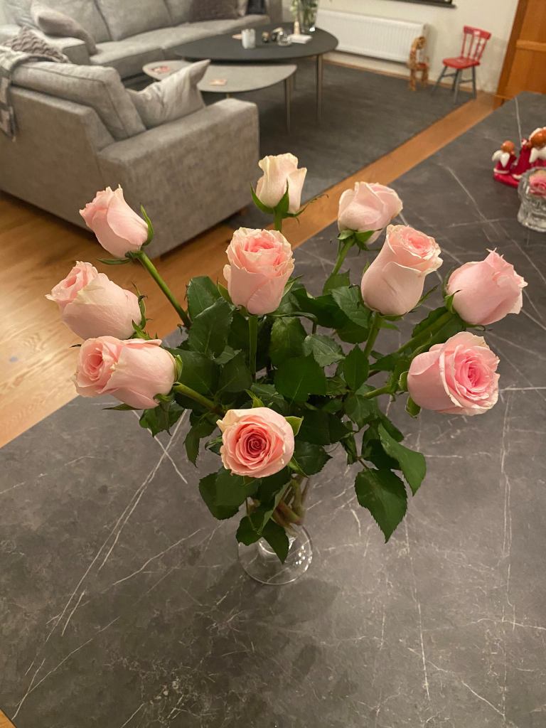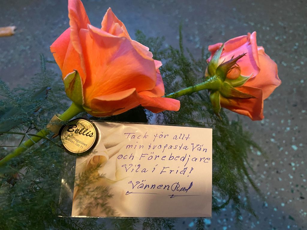 Vi hade en mycket trevlig eftermiddag med prat och bön. Jag säger bara det, vänner gör livet rikt. Hon gav mig så fina blommor, både rosa rosor och vita liljor. Jag är så tacksam.