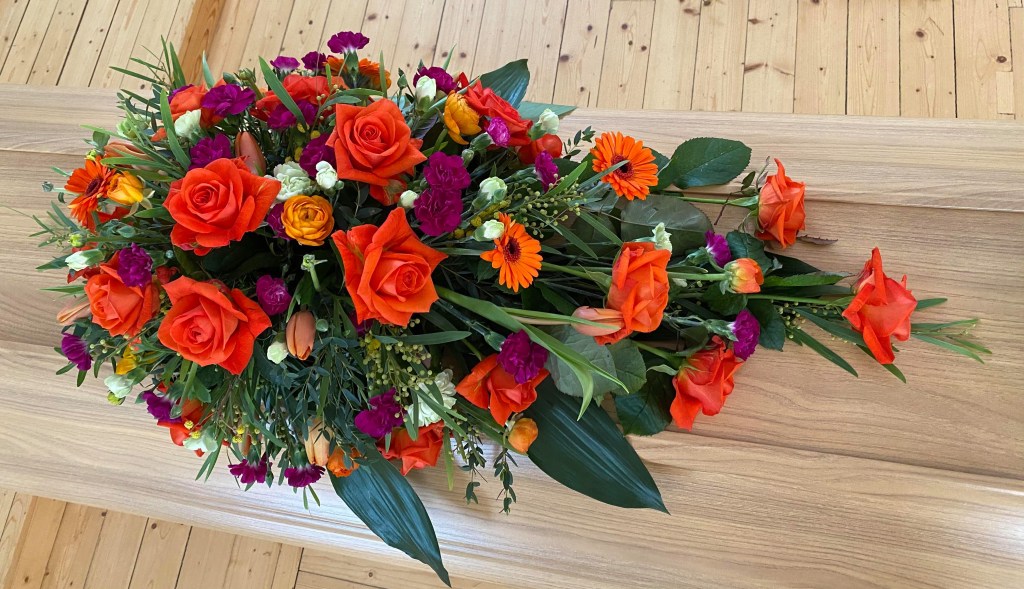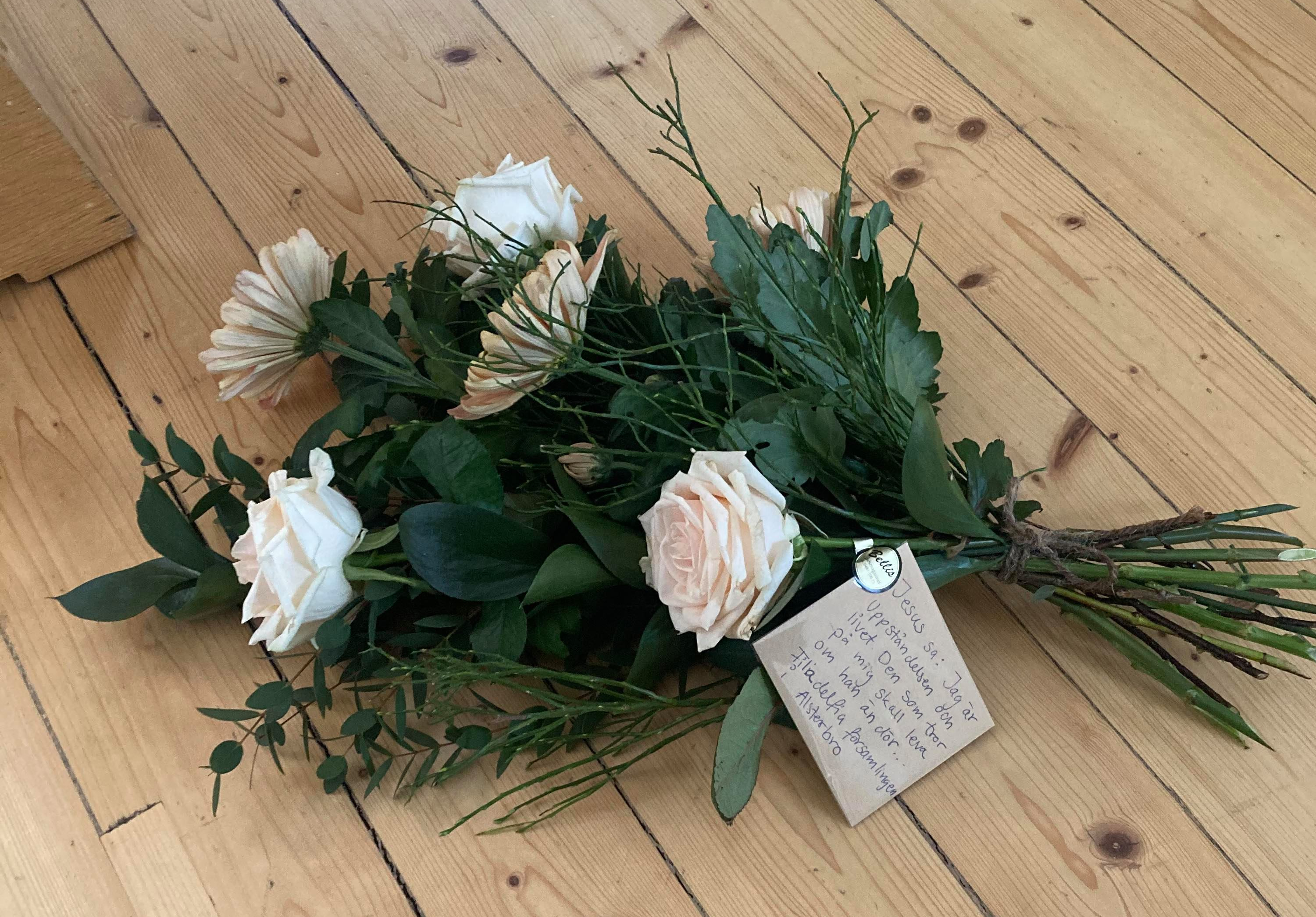Efter minnesstunden hämtade vi blommorna i Filadelfia och körde till graven på Kristvalla kyrkogård. Det var min bror Hans med familj och min man Hans, hans dotter Vilma och jag. Det kändes fint att få lägga blommorna på graven. Mamma ska kremeras så urnsättningen blir senare.
