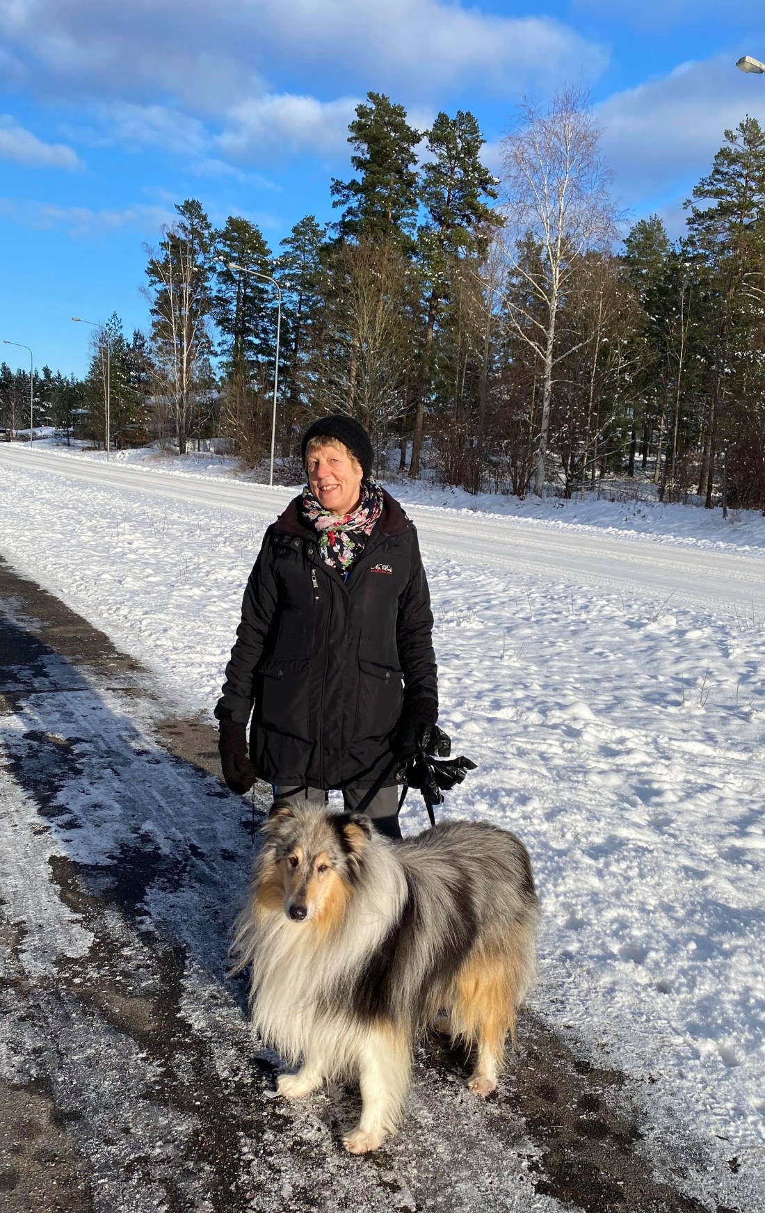 På eftermiddagen tog jag en härlig promenad tillsammans med min goda vän Britt-Marie och hunden Flake. Sol, motion och frisk luft i kombination med en massa prat. Så trevligt!