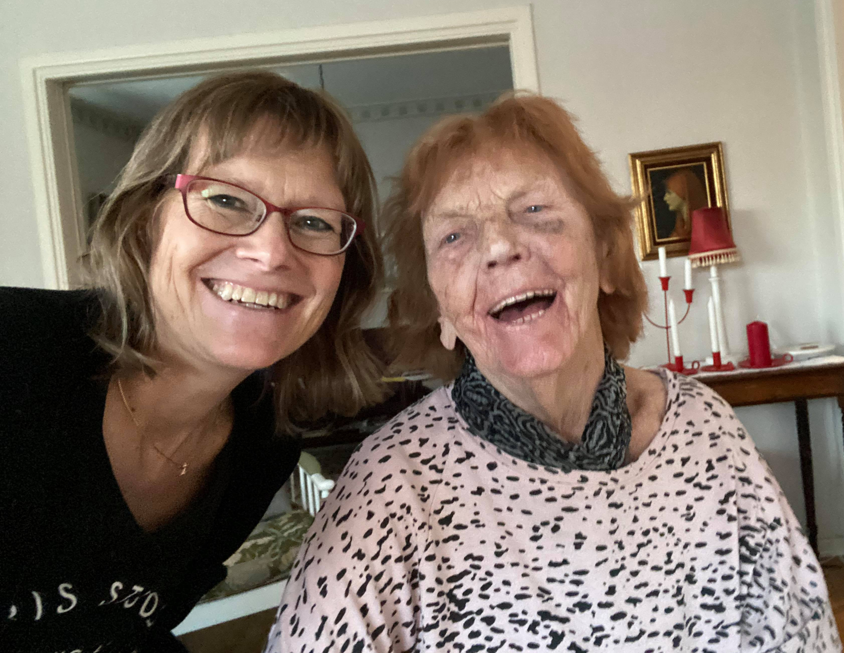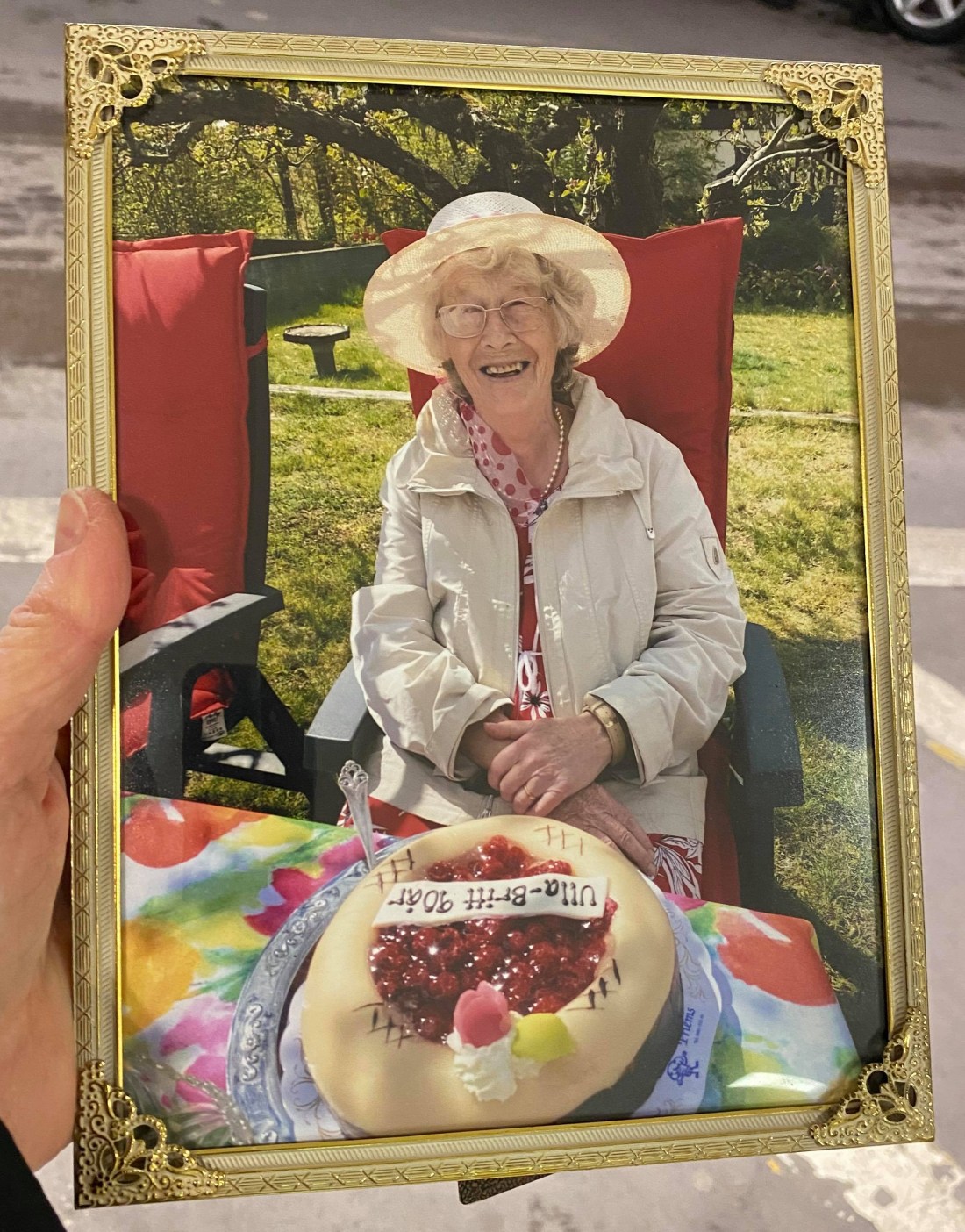 Jag beställde en förstoring av mamma och har hämtat den idag. Jag satte den i en av hennes gamla ramar och jag tycker det blev så gulligt. Vi ska ha det på begravningen. Fotot är från hennes 90-årsdag då vi firade och hade en trevlig dag i trädgården mitt i coronatiden. Jag är så glad för alla fina minnen.