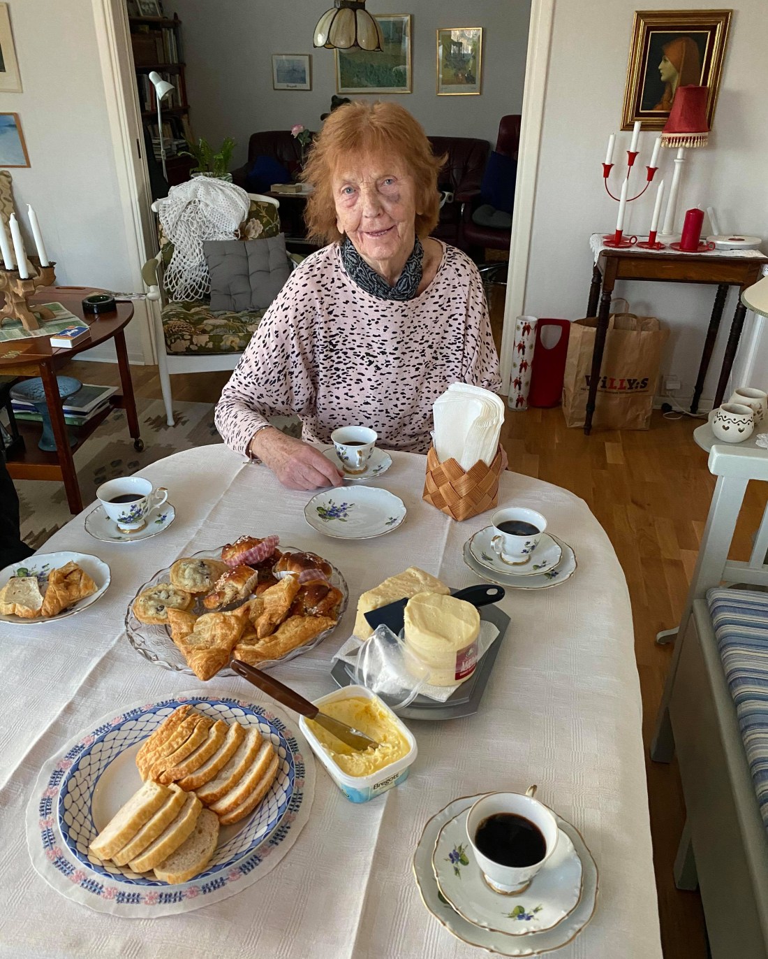 I eftermiddags bjöd goa grannen Inga oss andra på fika. Hon hade bullat upp en massa goda grejer. Det känns så fint att få fortsätta gemenskapen med mammas fina grannar även om mamma flyttat till himlen. Jag är verkligen tacksam att jag har dem här i huset. Det betyder så mycket med en god gemenskap.