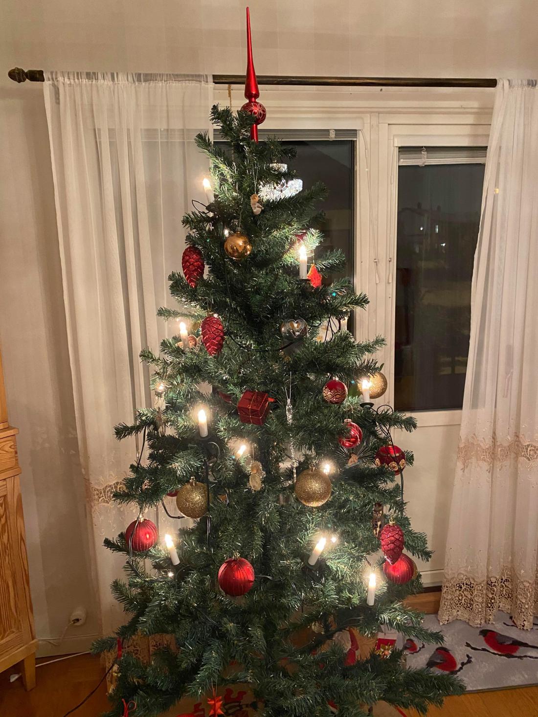 Den får följa med mig till Jönköping nästa vecka och kommer att återuppstå på Tallkullen om drygt 10 månader. Det är praktiskt med en ”plastgran” ifall man åker bort några dagar. Levande granar behöver ju vatten. ![]()