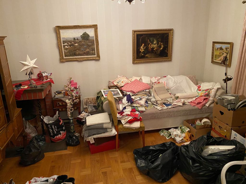Efter frukosten åkte vi till Återvinningen för att slänga grejer och lämna in en massa saker i Rias rum. Det var underbart att bli av med allt. När vi kom hem fortsatte vi att greja men efter någon timma gick luften ur oss. Vi tog en fika och sen åkte Hans.